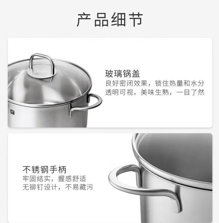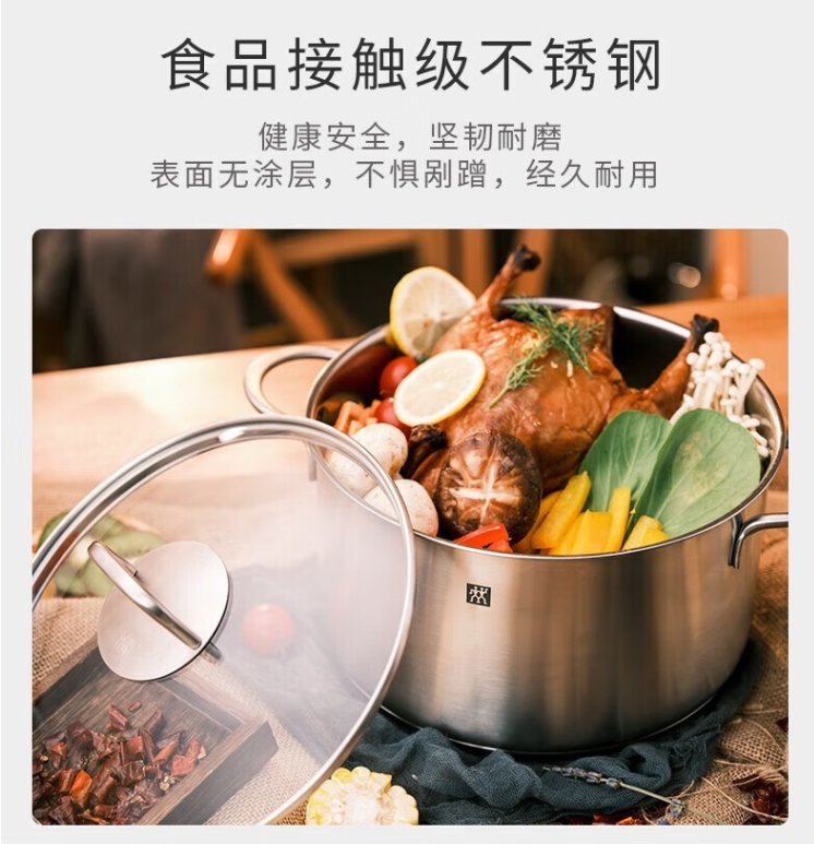 商品名称:双立人(ZWILLING)汤锅不锈钢深烧锅大容量煲汤炖肉锅煮汤锅炖锅煮粥煮面锅烹饪锅具 深烧锅 24cm/66423-240-982