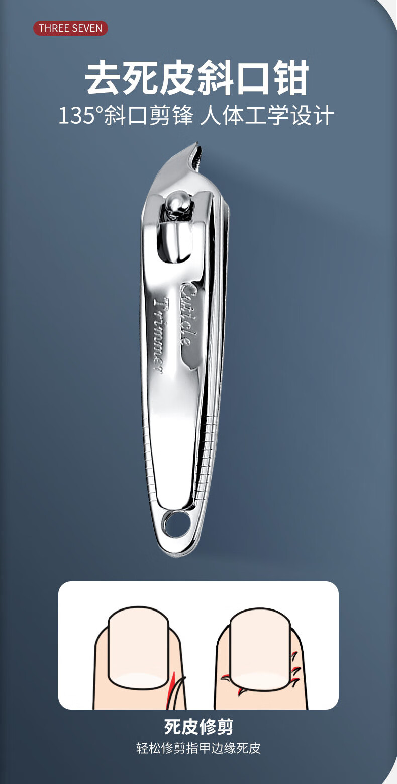 包装清单 :平口指甲刀 | 斜口指甲刀 | 死皮铲 | 眉夹 | 双头死皮推 | 指甲锉 | 耳挖 | 鼻毛剪