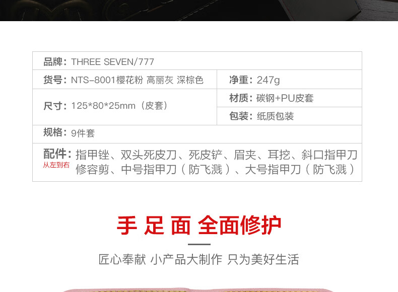 商品名称:777(THREE SEVEN)指甲刀套装9件套 NTS-8001
