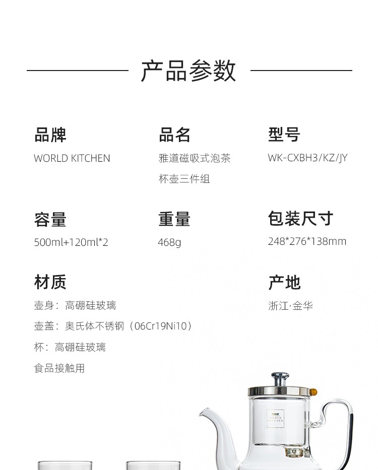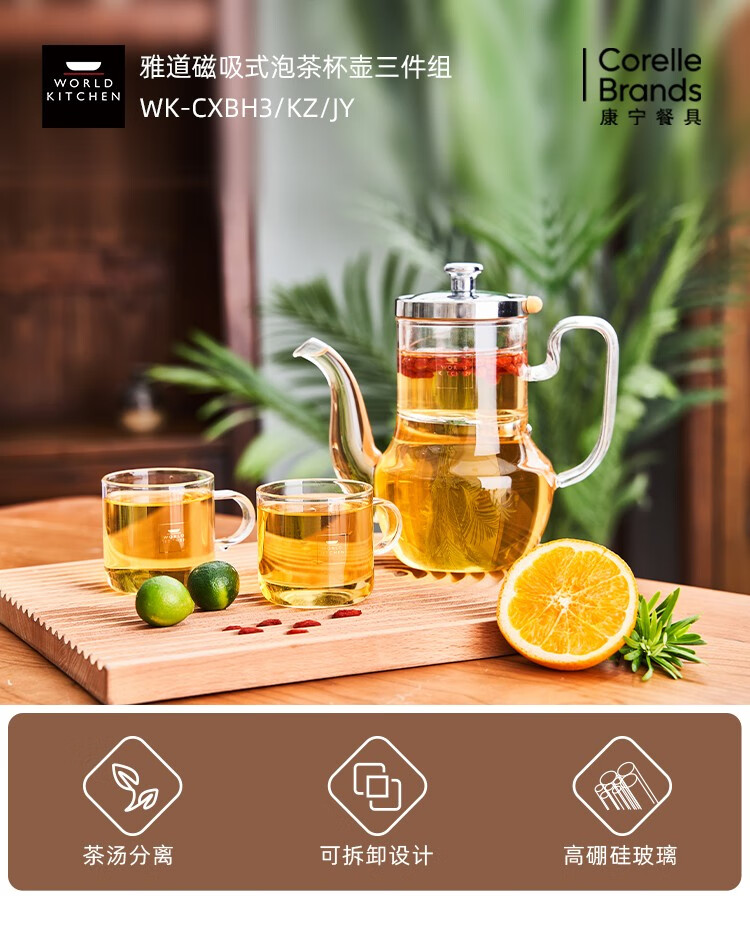 商品名称:康宁 雅道磁吸式泡茶杯壶三件组 WK-CXBH3/KZ/JY
