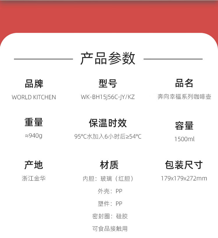 商品名称:康宁 奔向幸福系列咖啡壶 WK-BH15J56C-JY/KZ 1500ml