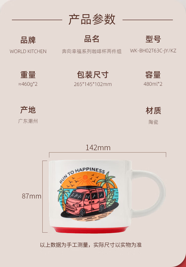 商品名称:康宁 奔向幸福系列咖啡杯两件组 WK-BH02T63C-JY/KZ 480ml*2