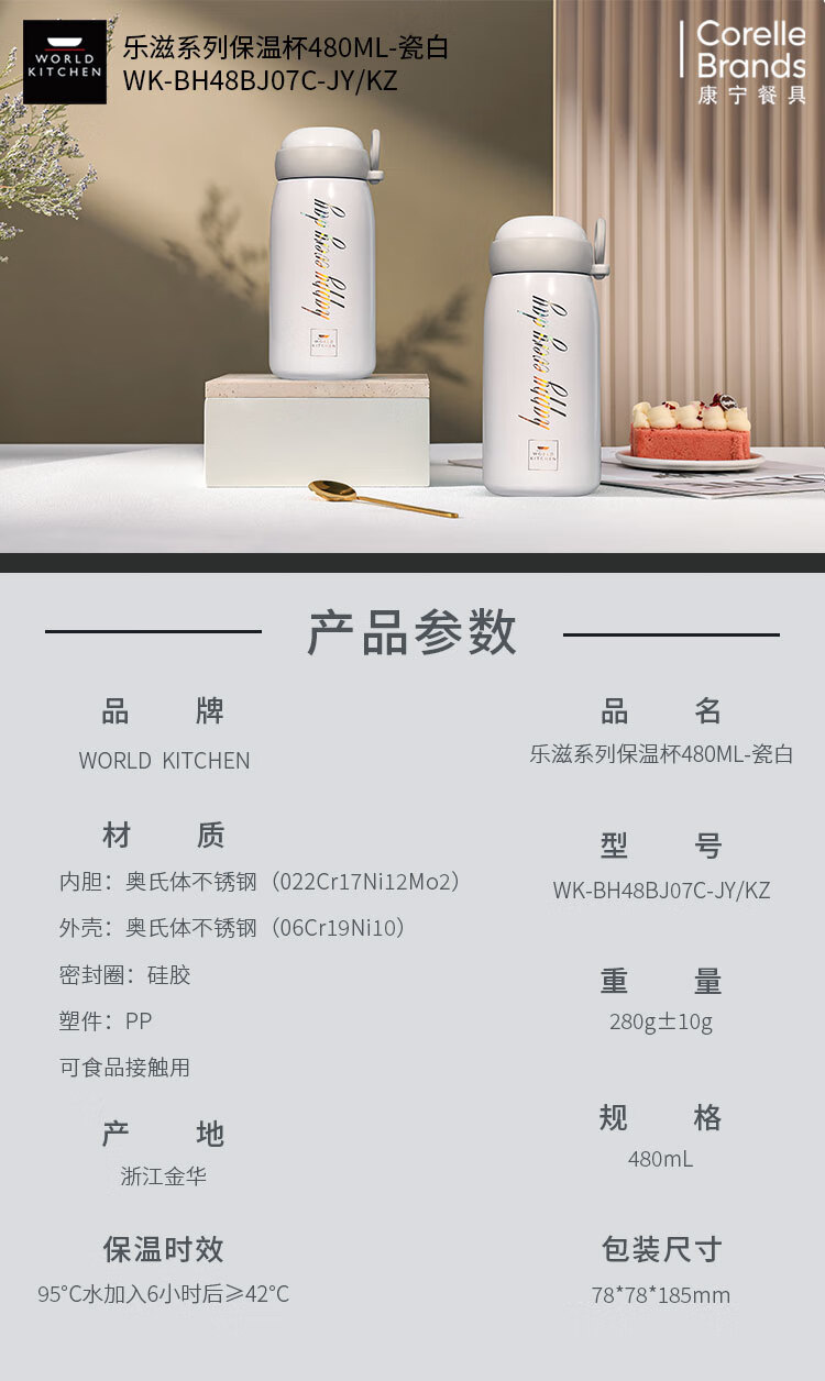 商品名称:康宁 乐滋系列保温杯480ML-瓷白 WK-BH48BJ07C-JY/KZ