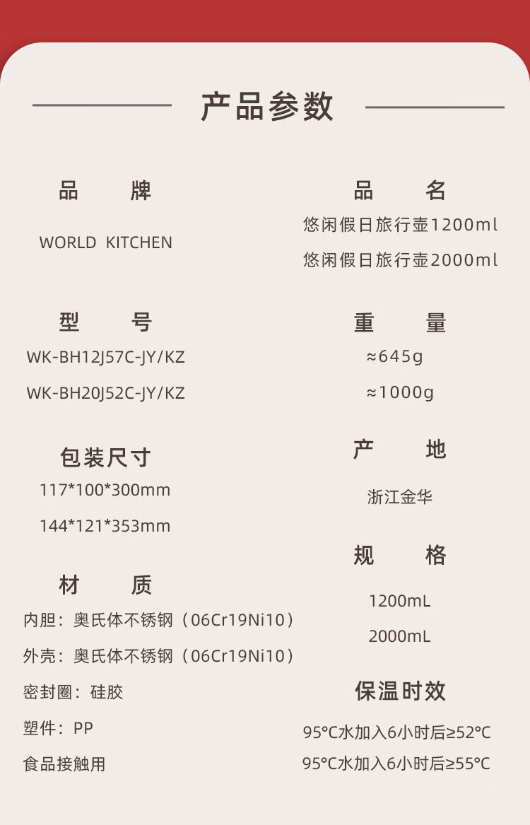 商品名称:康宁 悠闲假日旅行壶1200ml WK-BH12J57C-JY/KZ