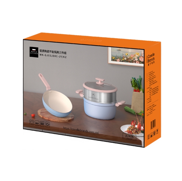 商品名称:康宁 铝质陶瓷不粘锅具三件组 WK-GJ03J88C-JY/KZ