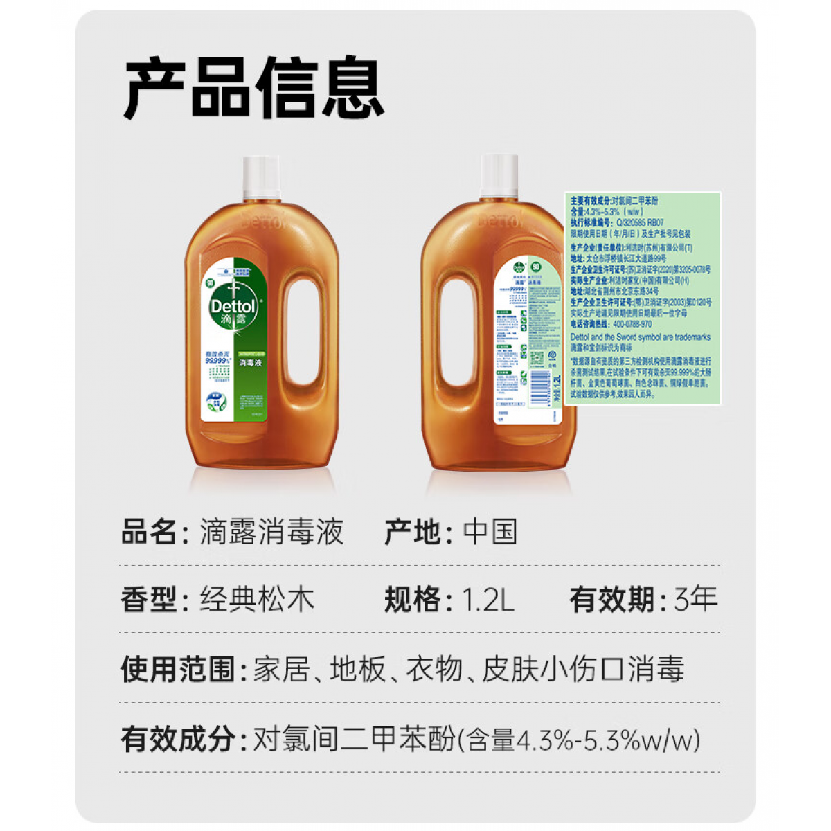 商品名称:滴露(Dettol)消毒液松木1.2L