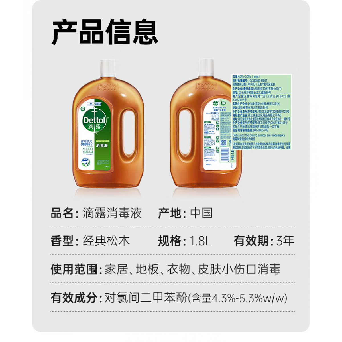 商品名称:滴露(Dettol)消毒液松木1.8L