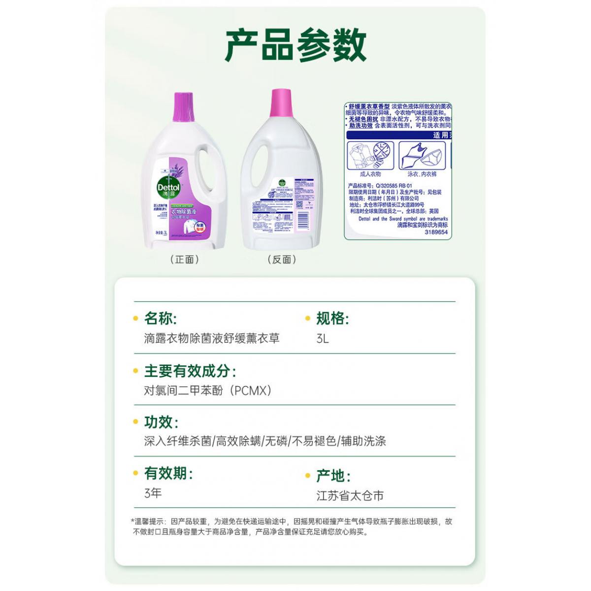 商品名称:滴露(Dettol)衣物除菌液薰衣草3L