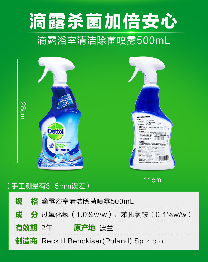商品名称:滴露(Dettol)浴室清洁除菌喷雾500ml