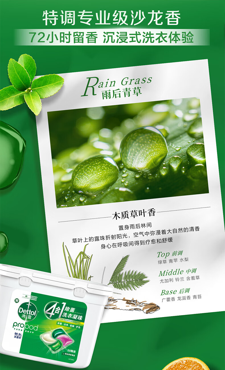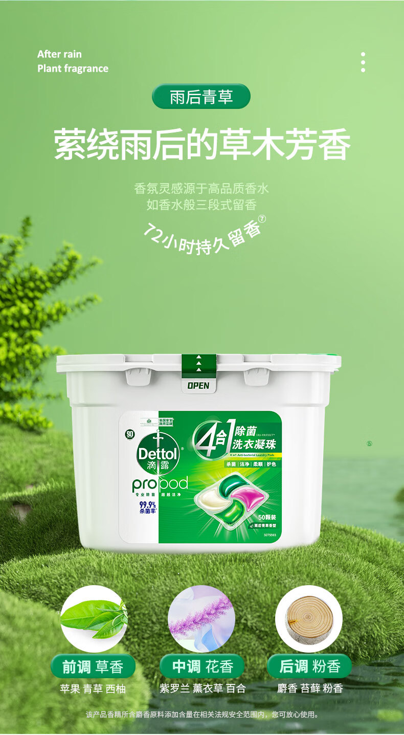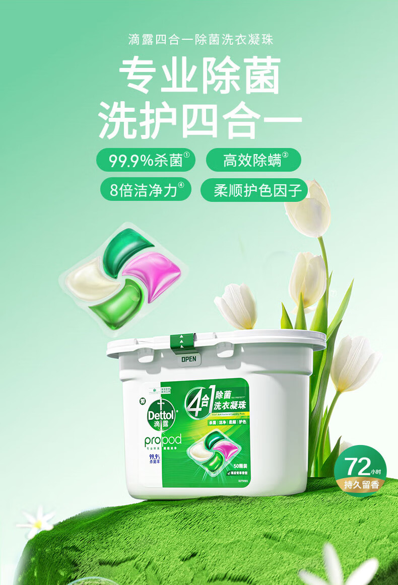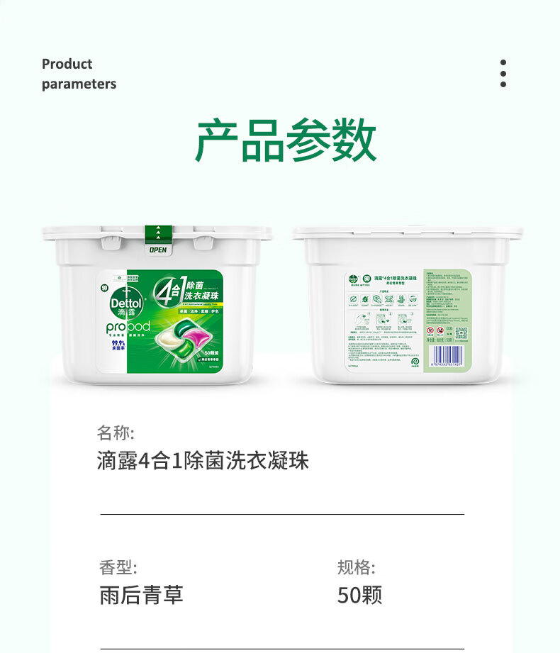 商品名称:滴露(Dettol)除菌洗衣凝珠四合一50颗