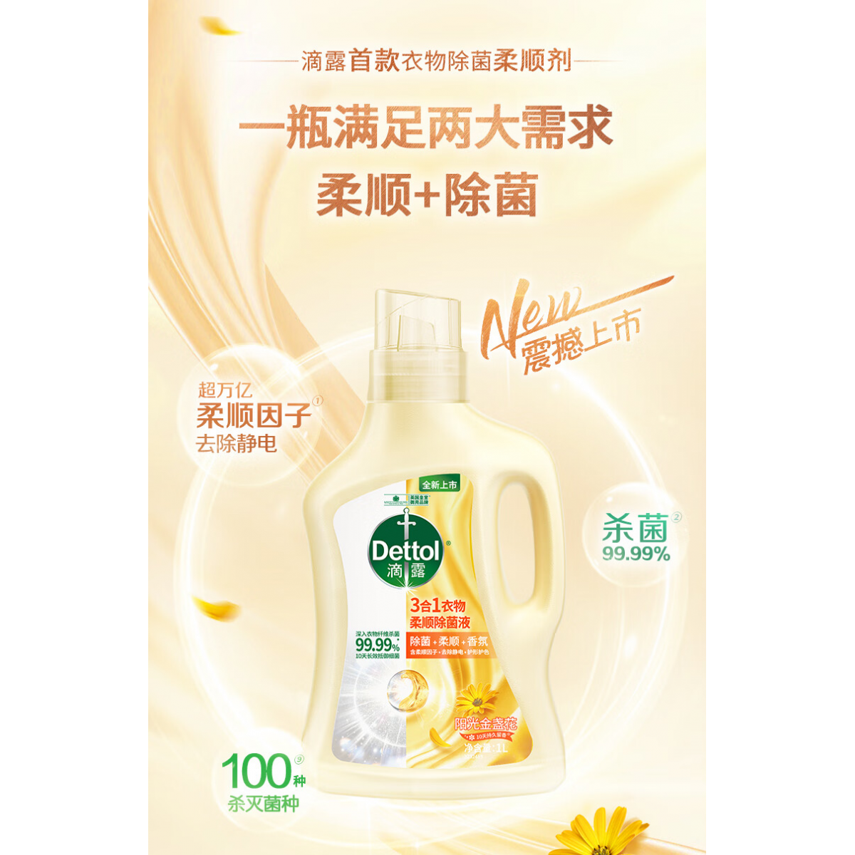 滴露(Dettol)衣物柔顺除菌液金盏花1L