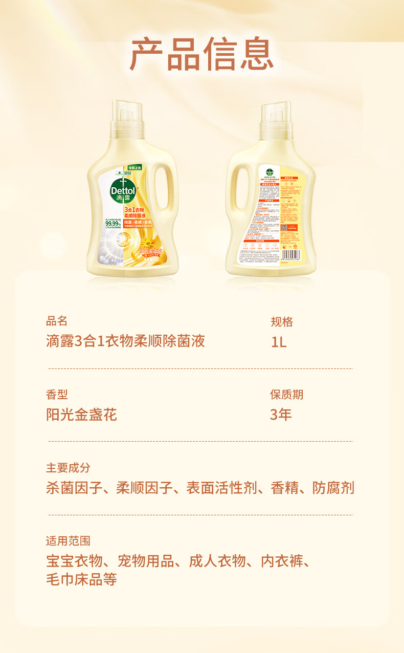 商品名称:滴露(Dettol)衣物柔顺除菌液金盏花1L