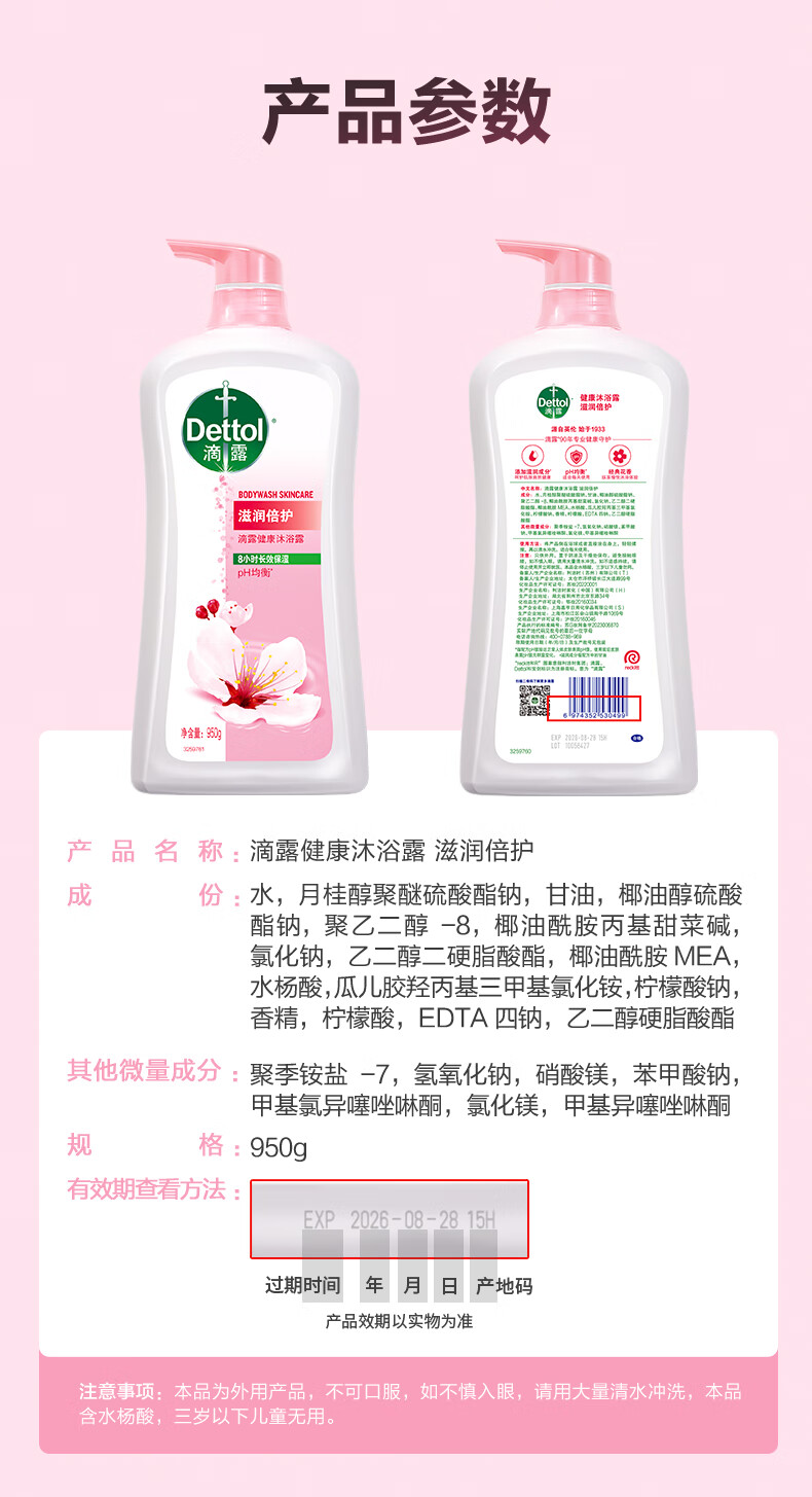 商品名称:滴露(Dettol)沐浴露滋润倍护950g