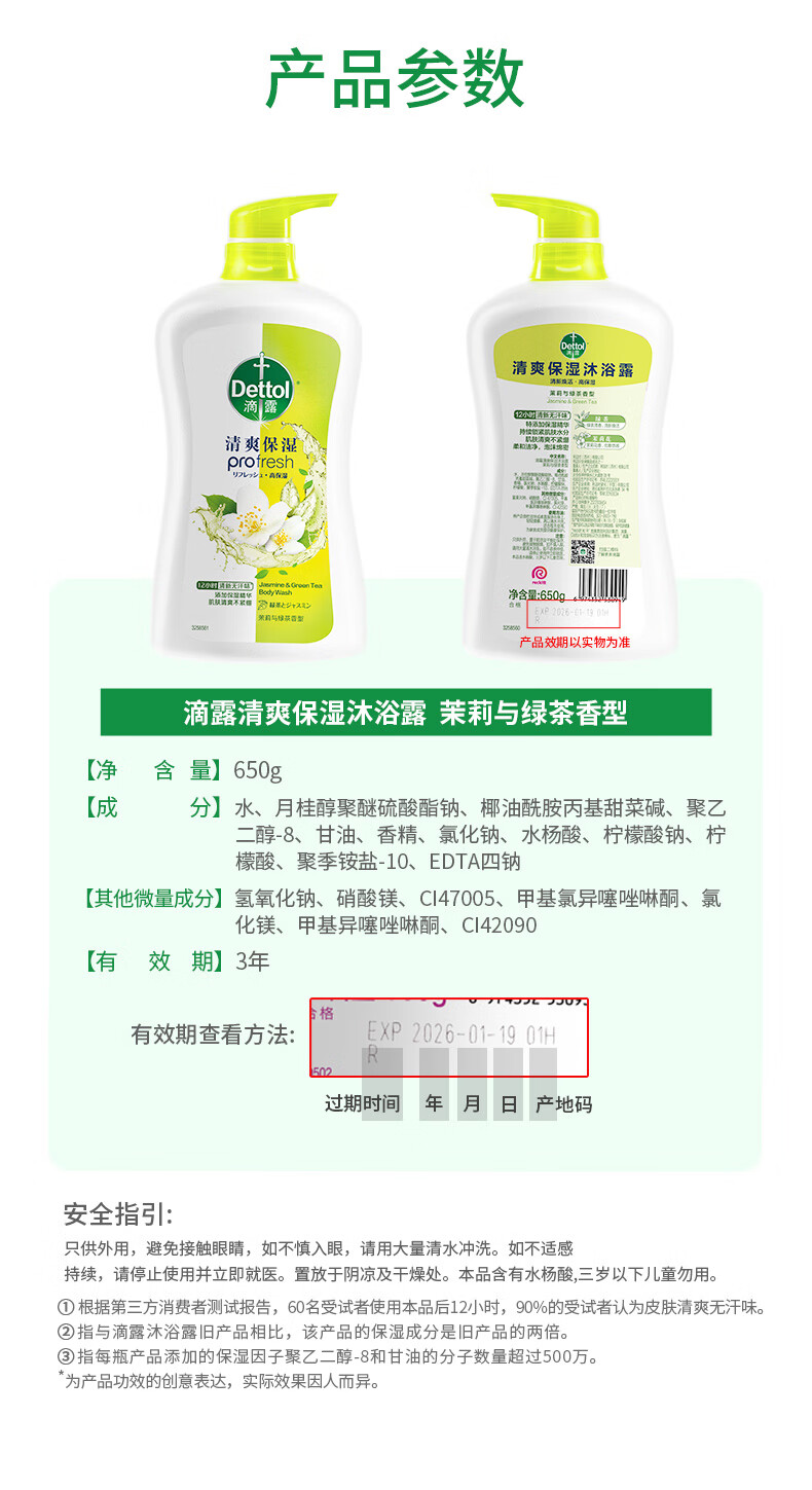 商品名称:露(Dettol)沐浴露茉莉绿茶650g