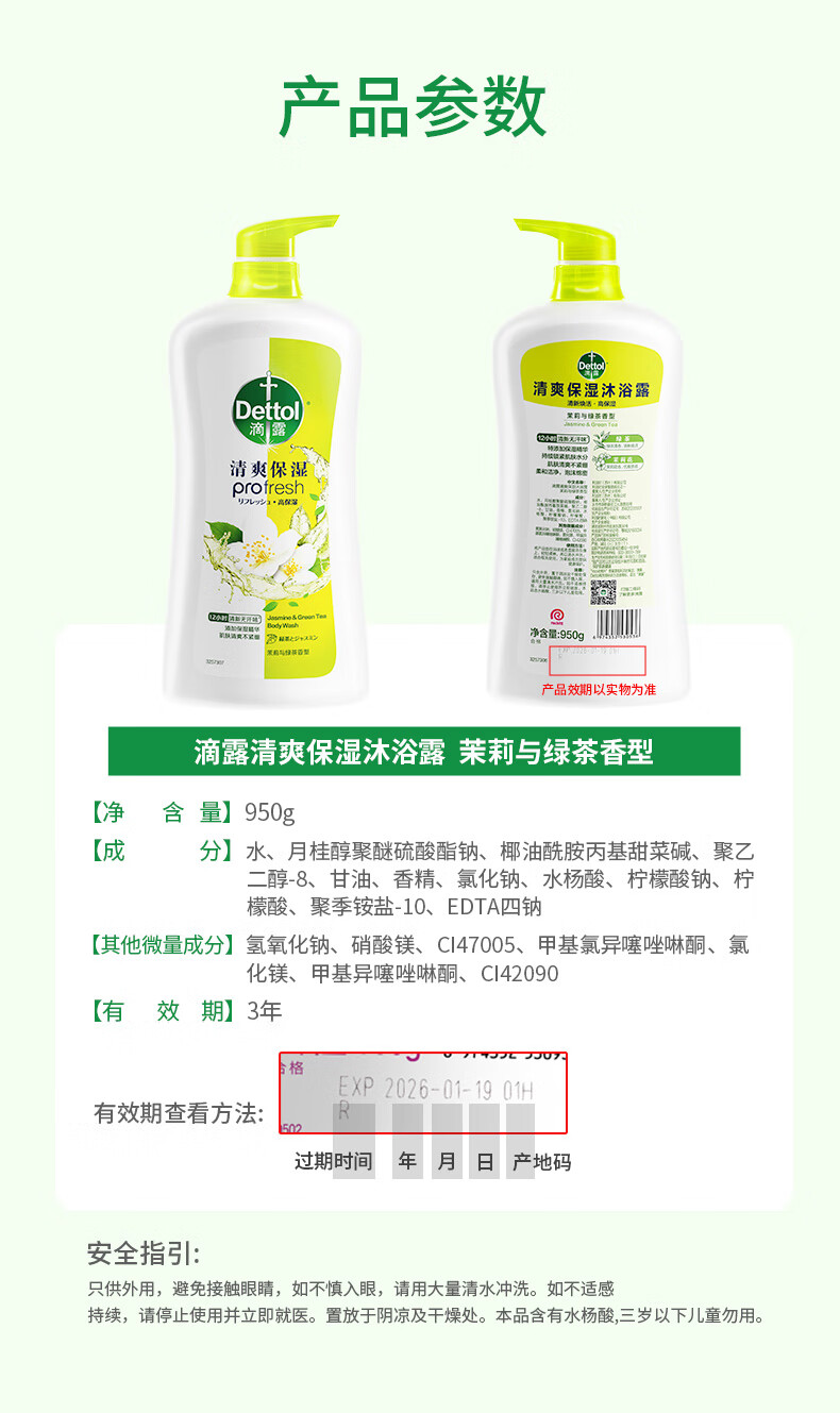 商品名称:滴露(Dettol)沐浴露茉莉绿茶950g
