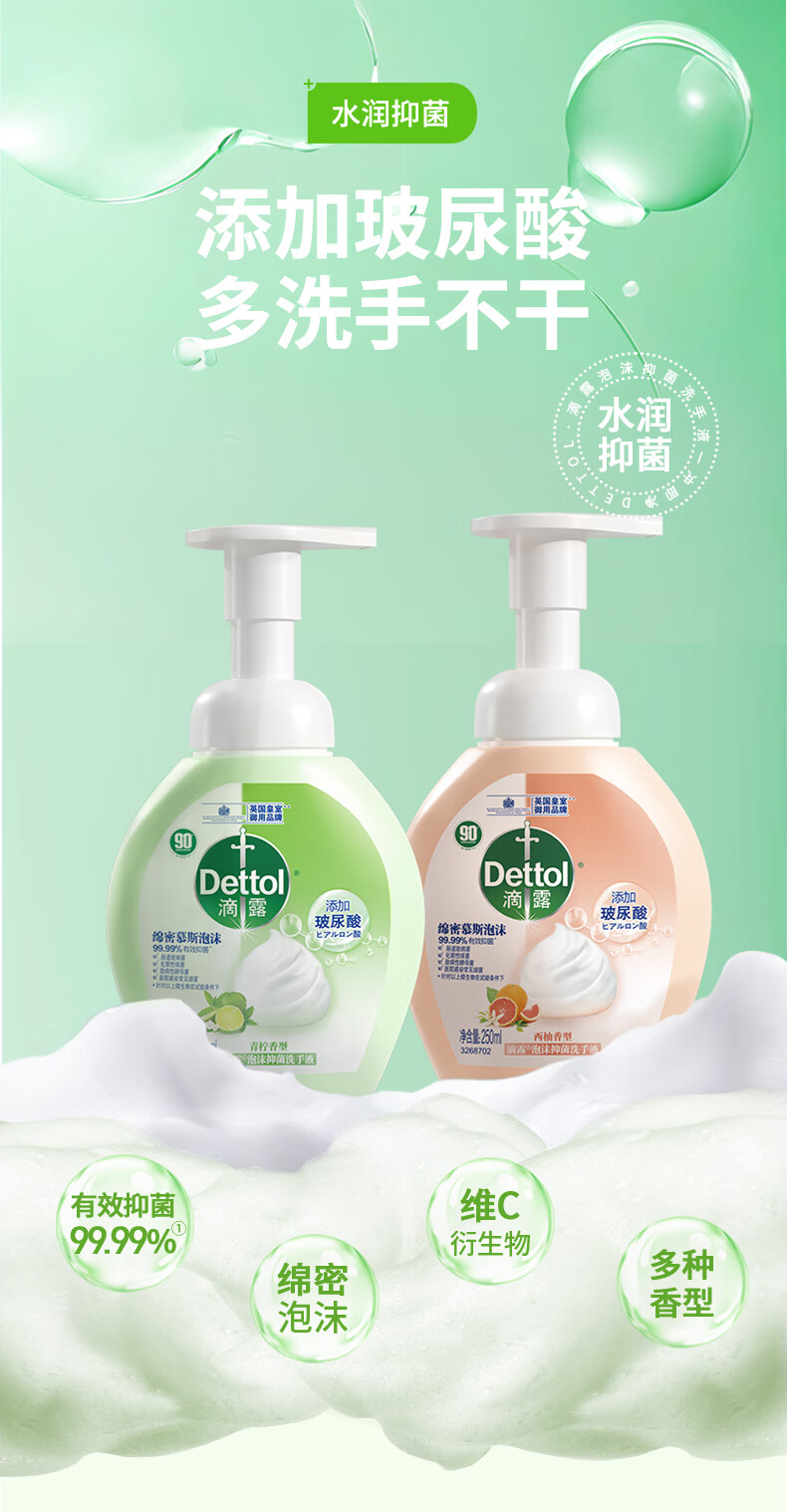 滴露(Dettol)泡沫洗手液西柚+青柠250ml*2