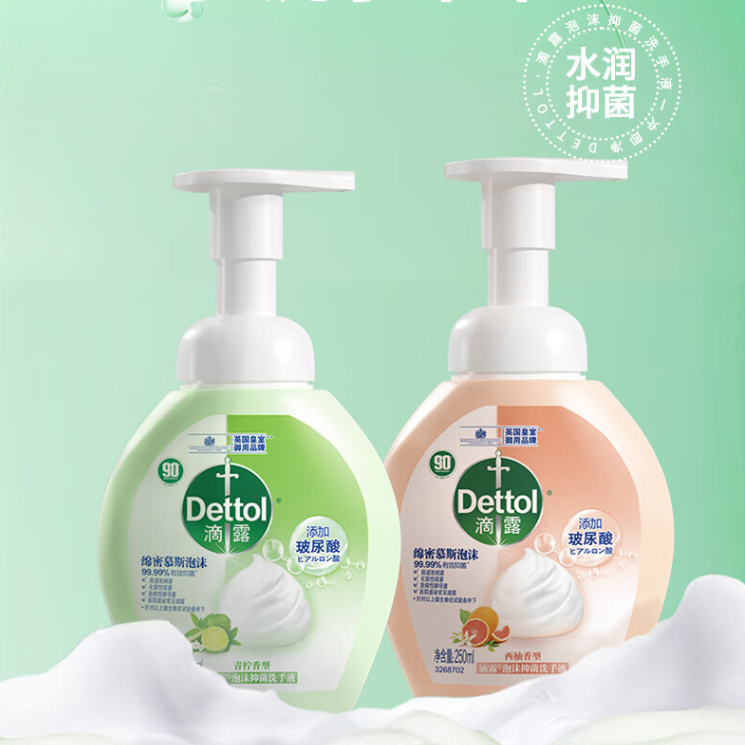 商品名称:滴露(Dettol)泡沫洗手液西柚+青柠250ml*2