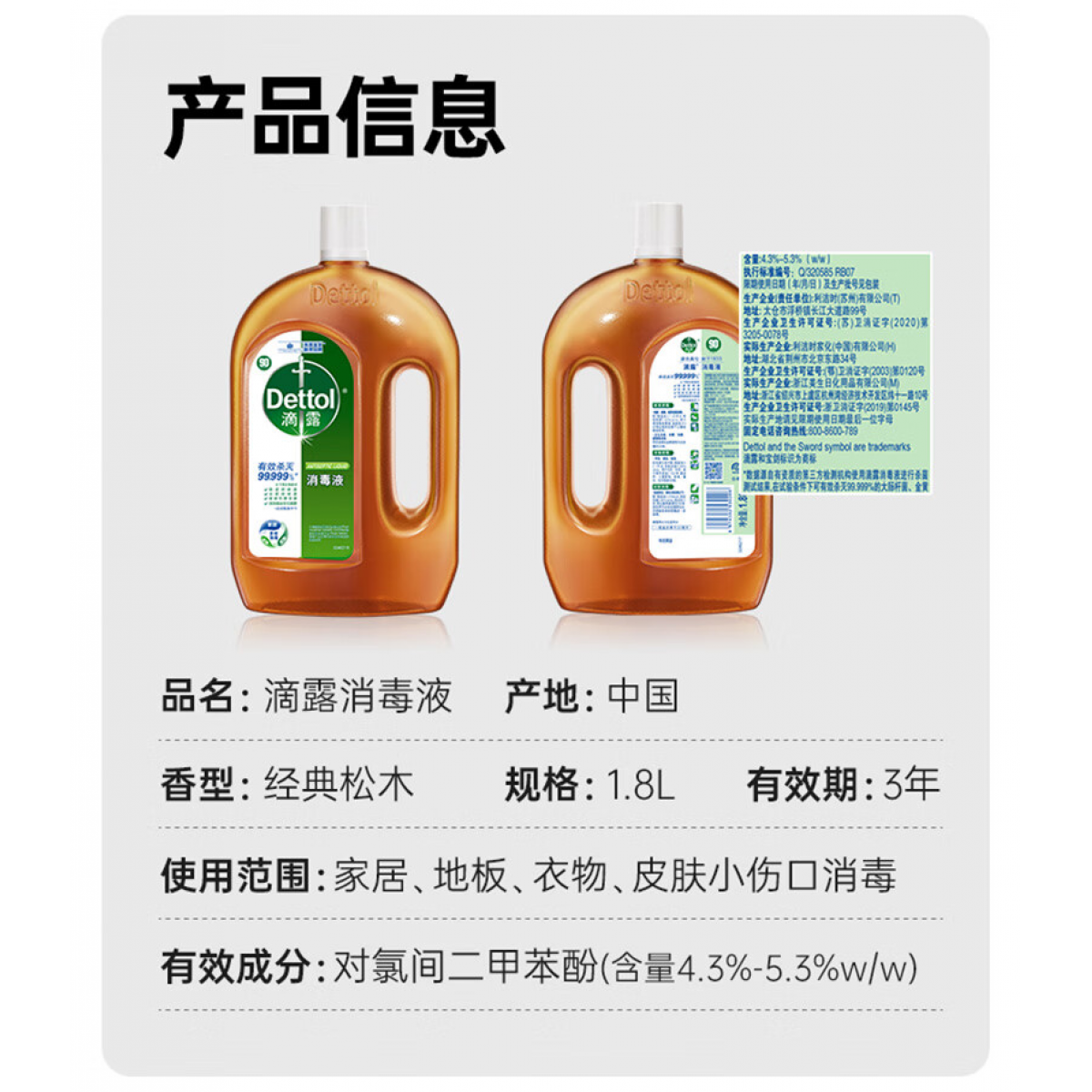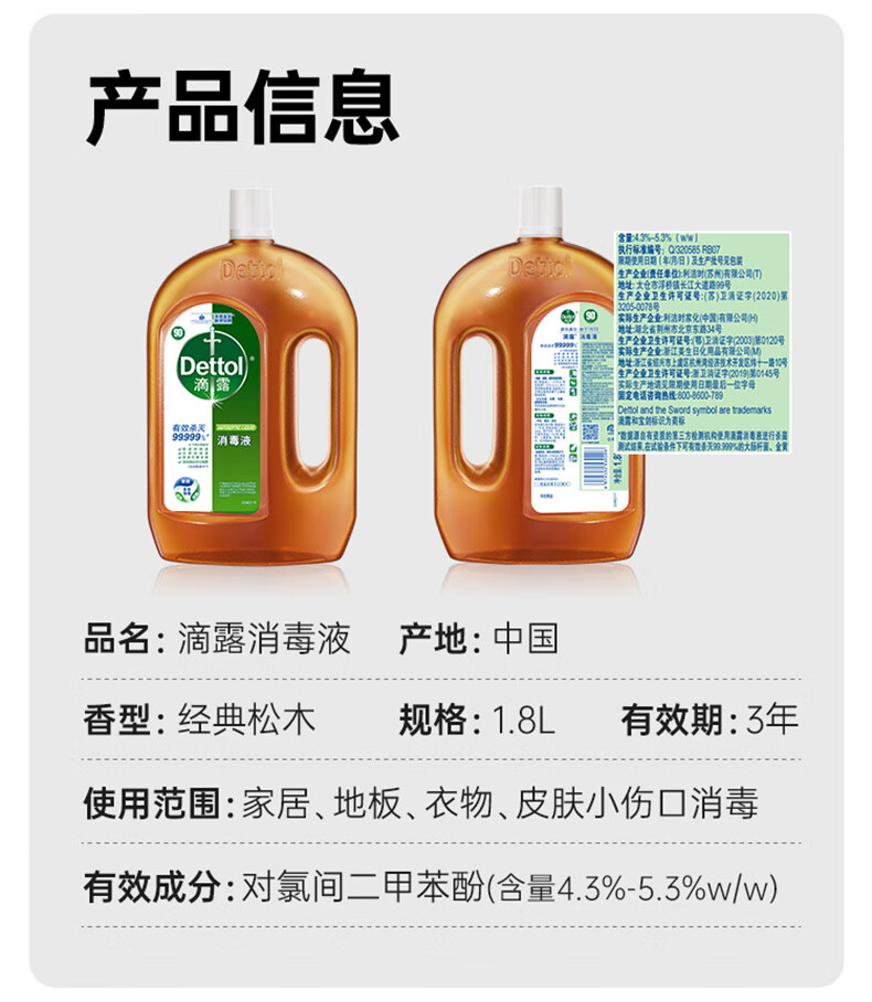 商品名称:滴露(Dettol)消毒液囤货装 松木1.8L*4