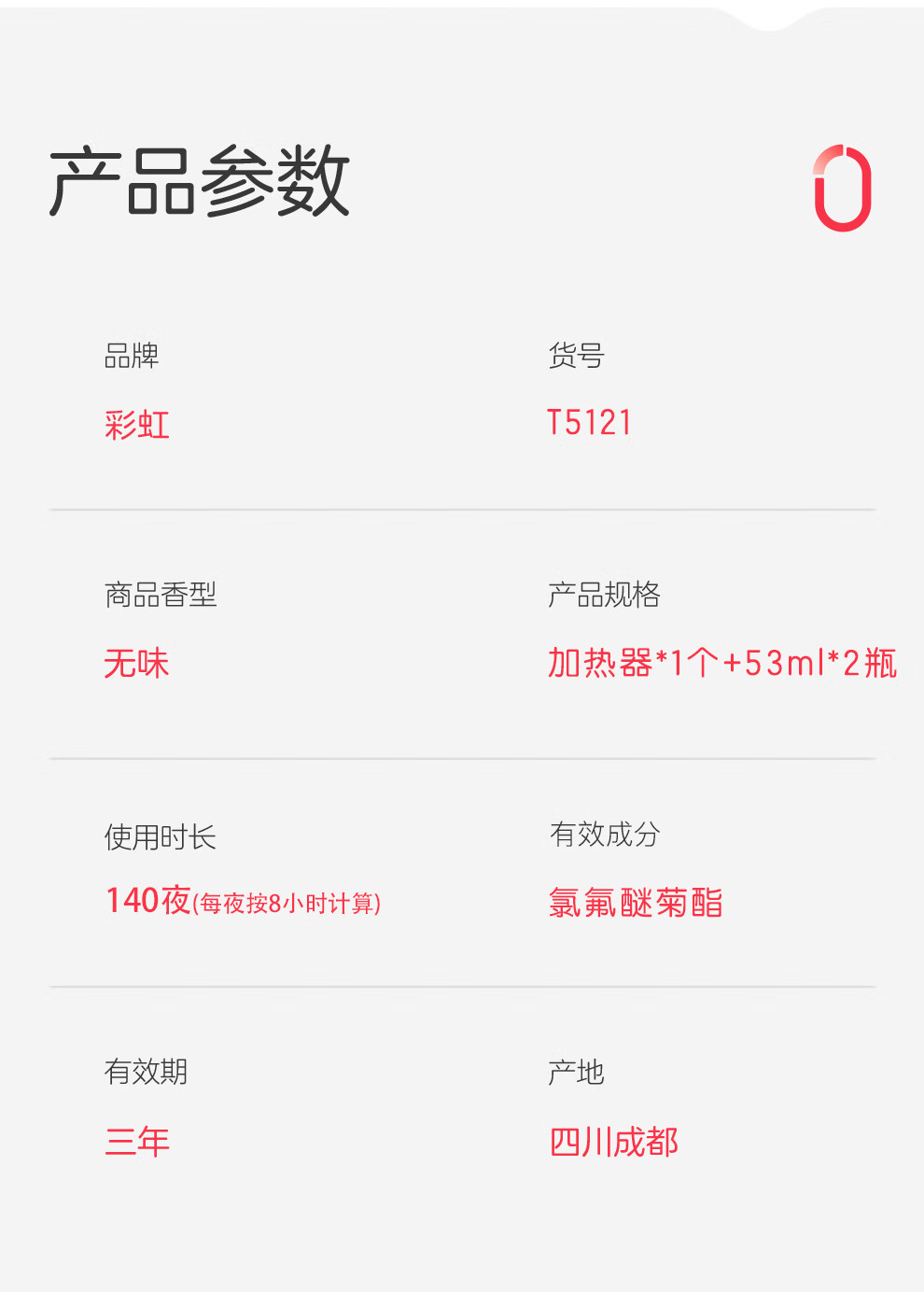 商品名称:彩虹 蚊香液直插器超值装(2+1)无味 T5121-X