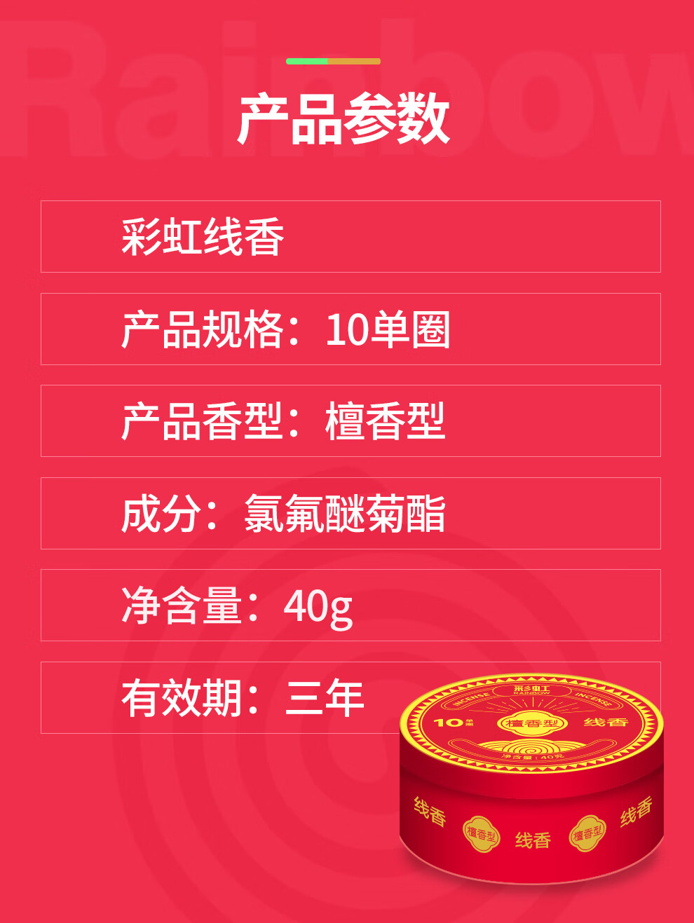 商品名称:彩虹 蚊香特惠装(艾草清香)5622 10单圈