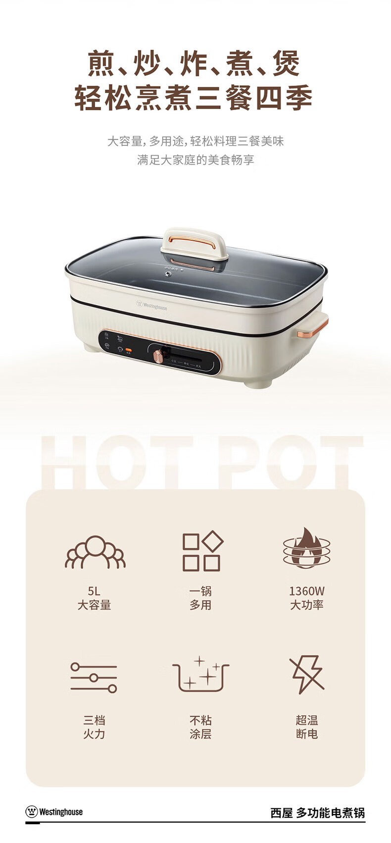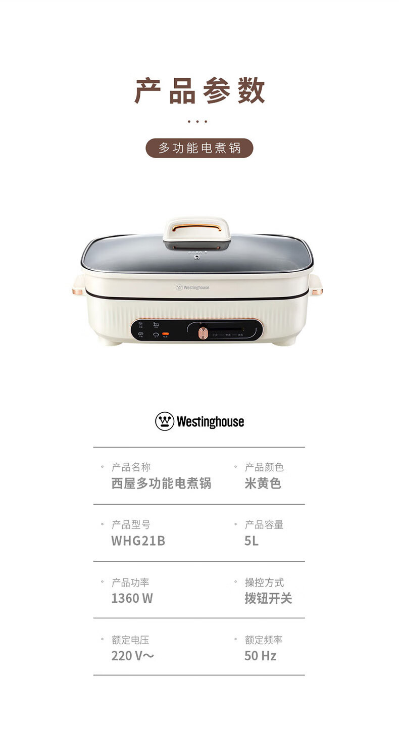 商品名称:西屋 Westinghouse 多功能电煮锅 WHG21B 5L