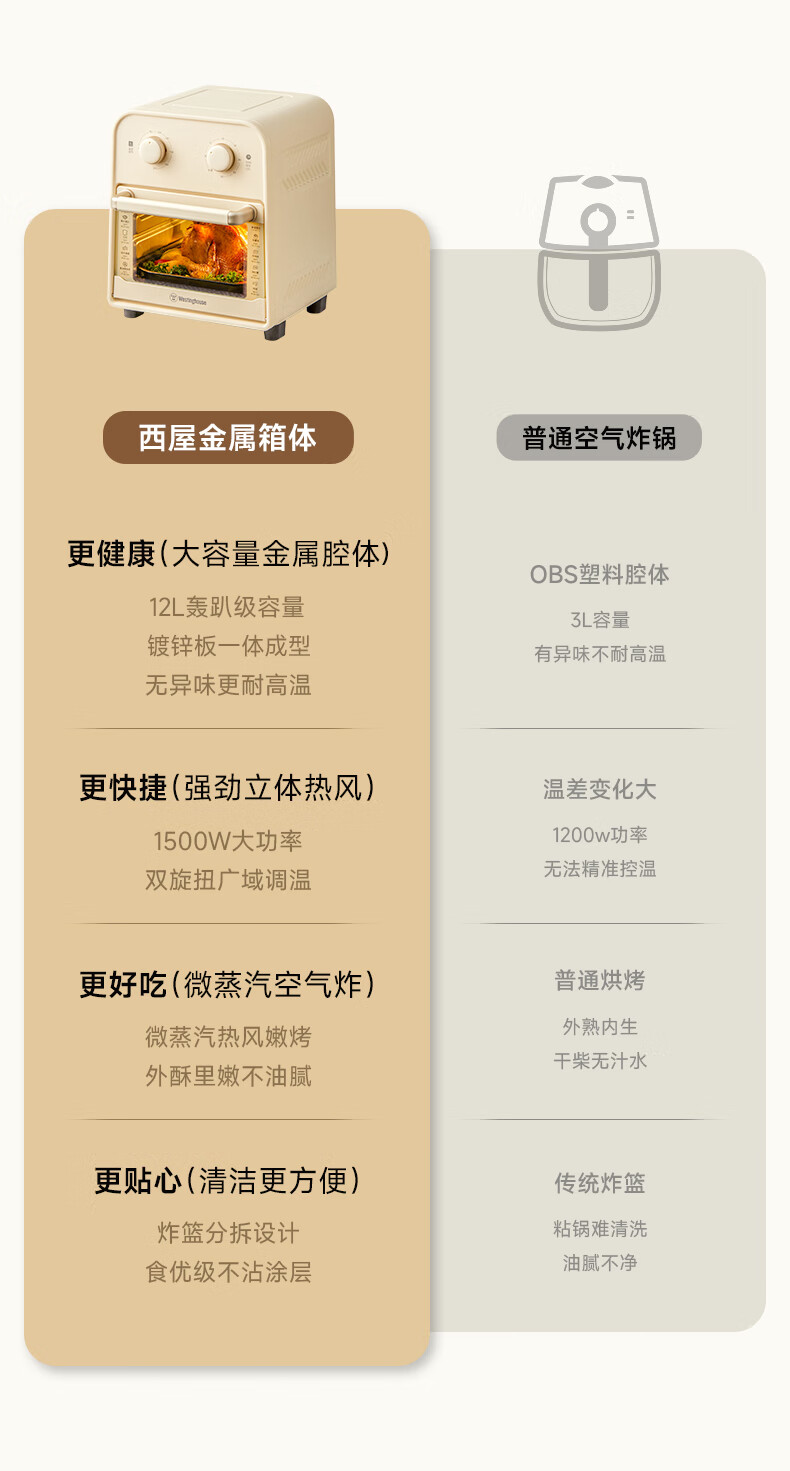 西屋 Westinghouse 空气炸烤箱 WKX12A21 12L