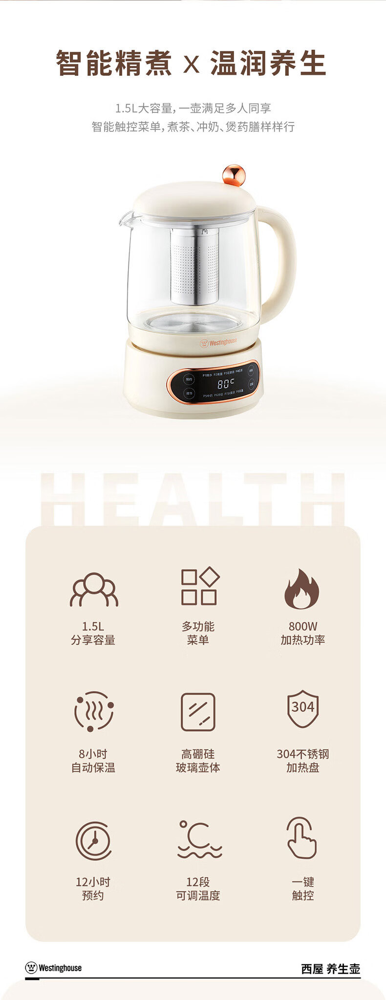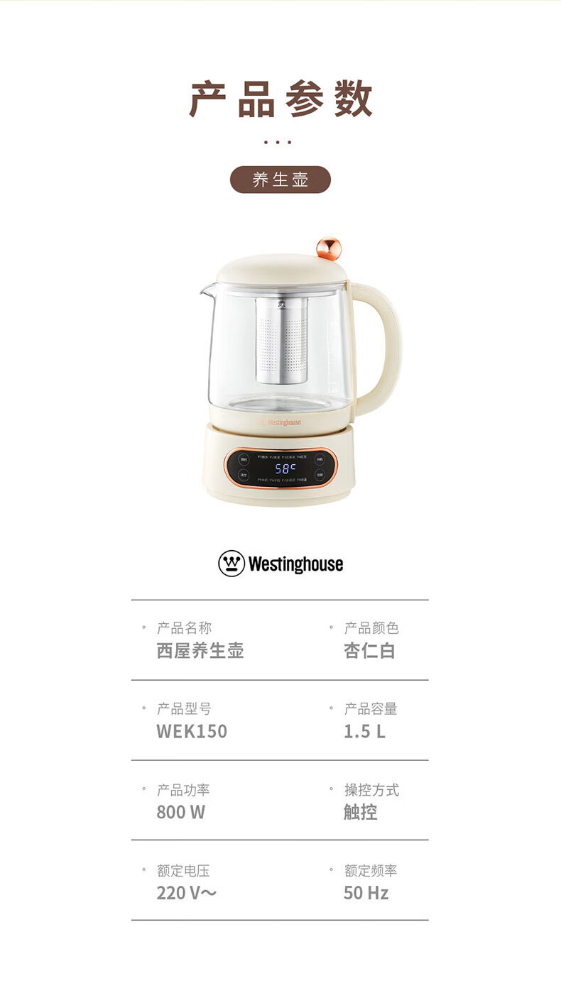 商品名称:西屋 Westinghouse 养生壶 WEK150 1.5L