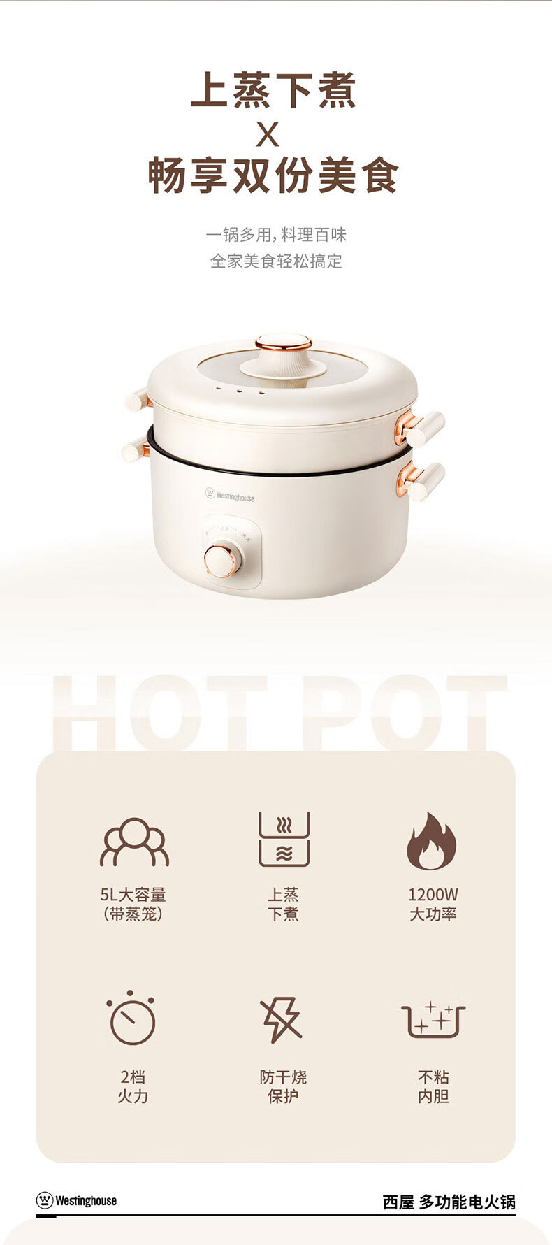 西屋 Westinghouse 多功能电火锅 WHG05D 5L