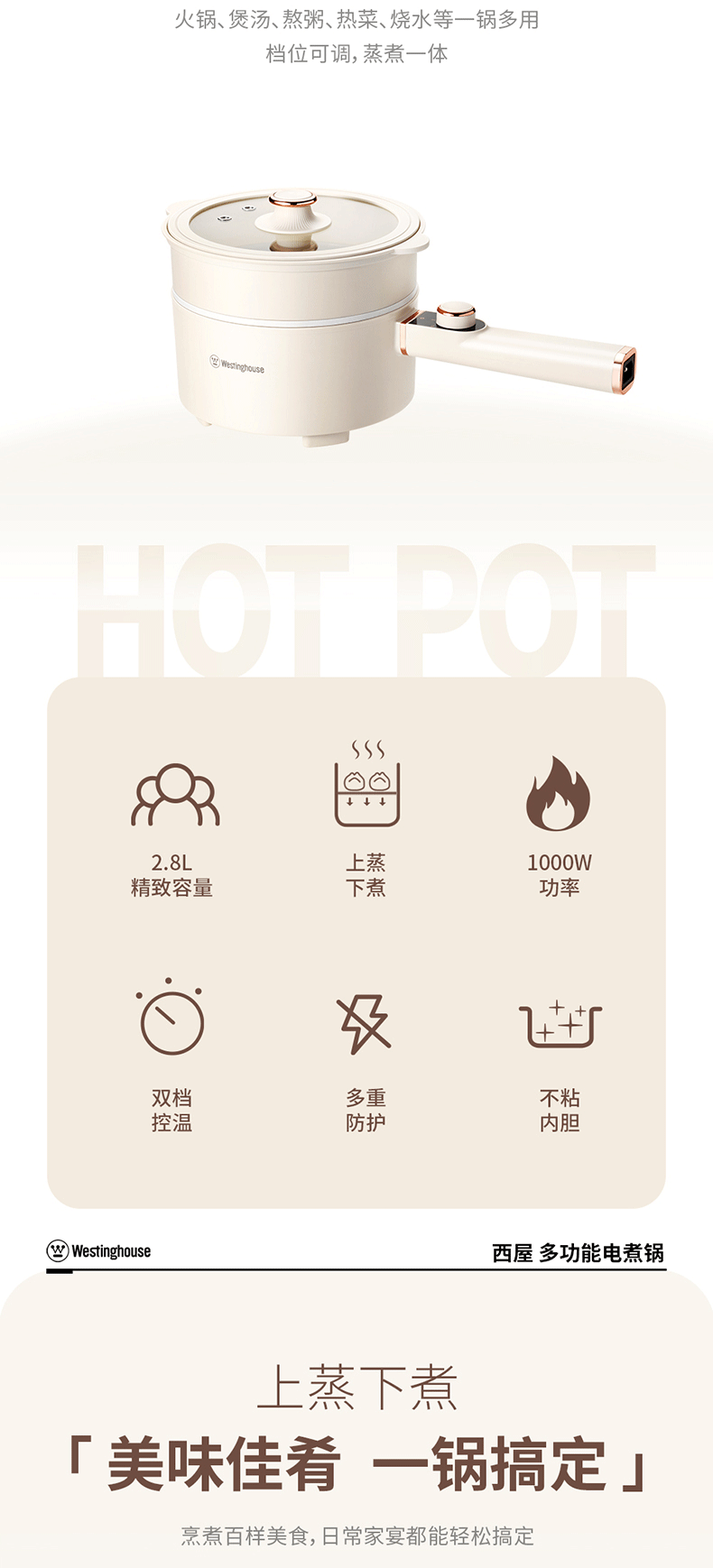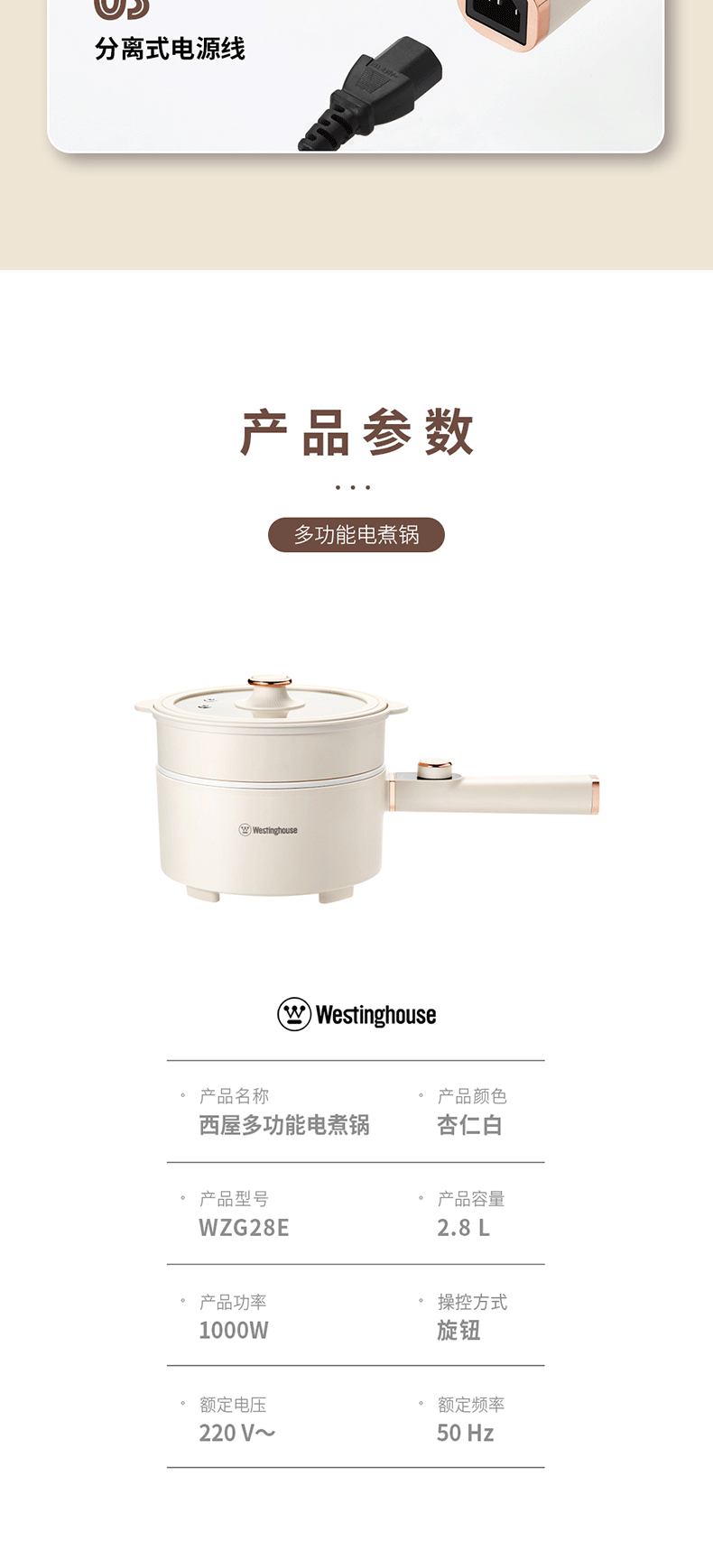 商品名称:西屋 Westinghouse 多功能电煮锅 WZG28E 2.8L