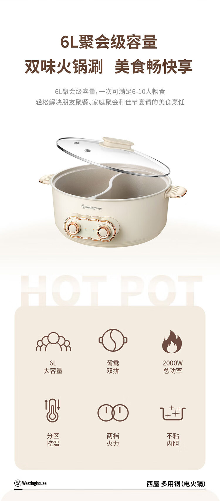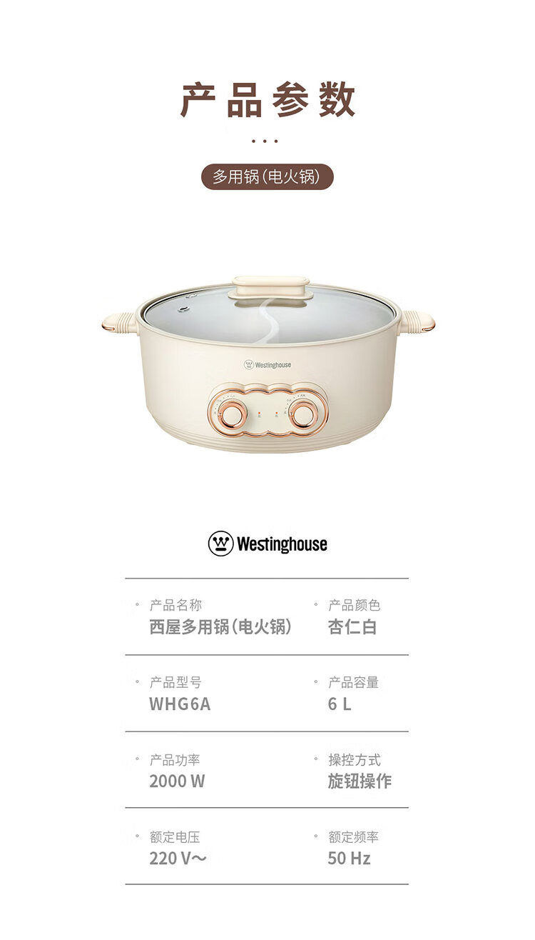 商品名称:西屋 Westinghouse 电火锅 WHG6A 6L