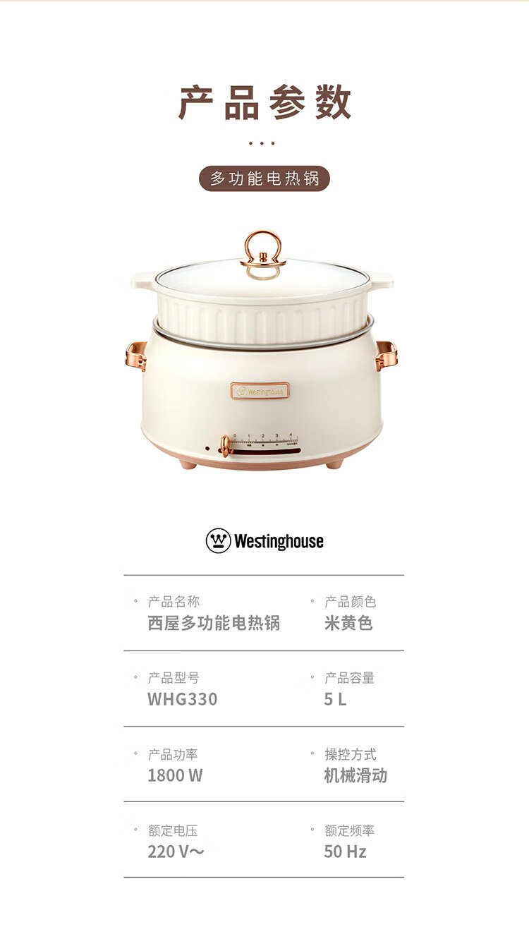 商品名称:西屋 Westinghouse 多功能电热锅 WHG330 5L