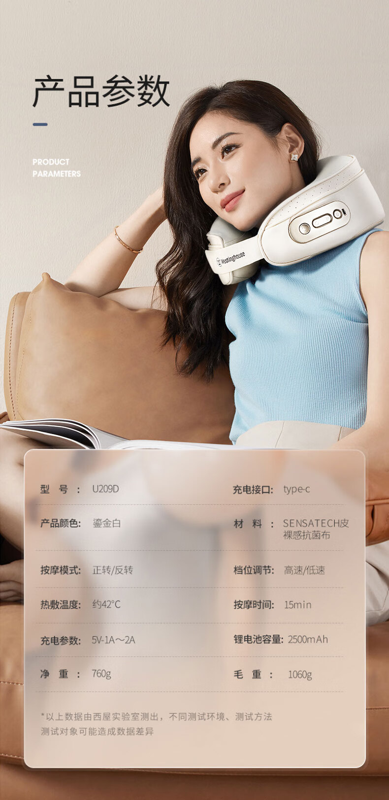 商品名称:西屋 Westinghouse 颈椎按摩仪 WCM-U209D