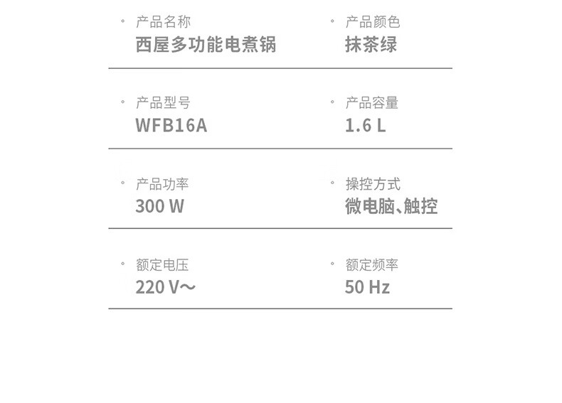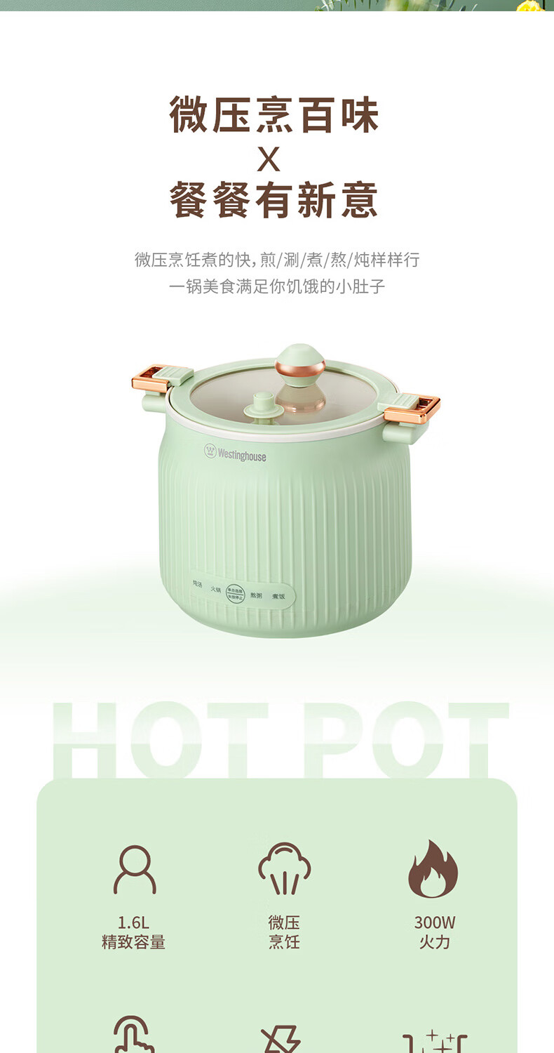 商品名称:西屋 Westinghouse 多功能电煮锅 WFB16A 1.6L