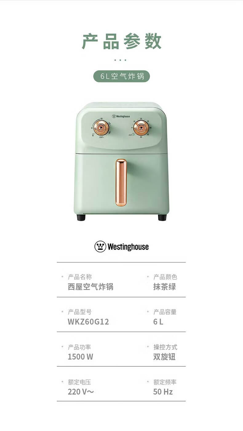 商品名称:西屋 Westinghouse 空气炸锅 WKZ60G12 6L