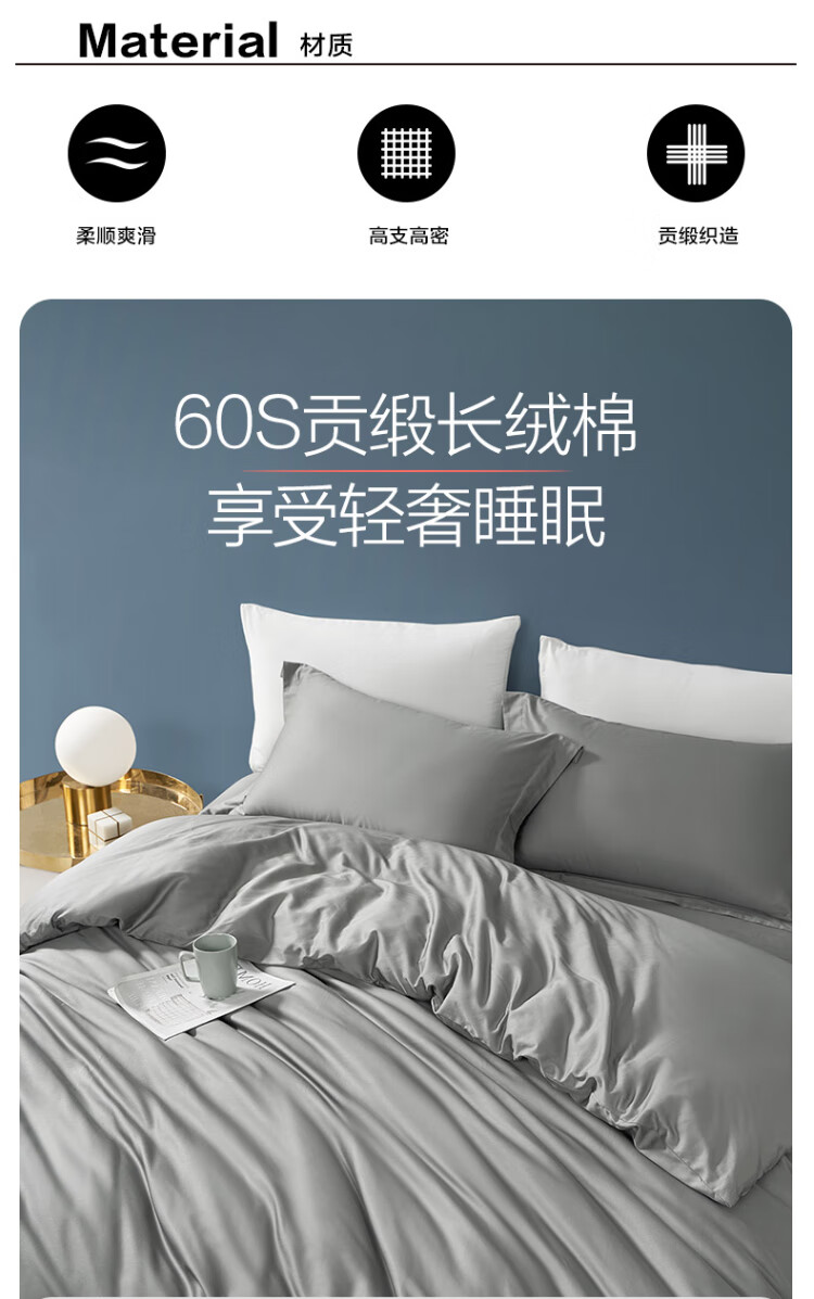 商品名称:罗莱家纺LUOLAI 拉菲特高端贡缎四件套 TGVF2303 200×230(cm)×1
