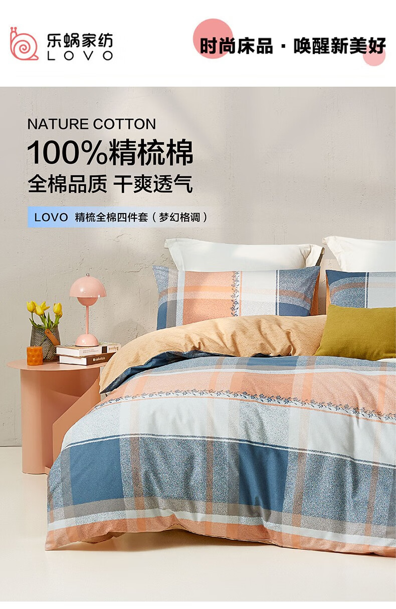 罗莱家纺LUOLAI 精梳全棉四件套 LV-001 梦幻格调 200x230(cm)x1