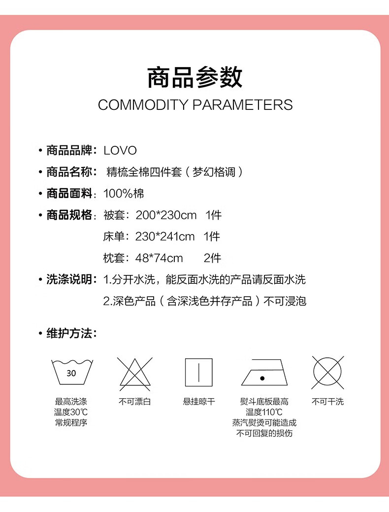 商品名称:罗莱家纺LUOLAI 精梳全棉四件套 LV-001 梦幻格调 200x230(cm)x1