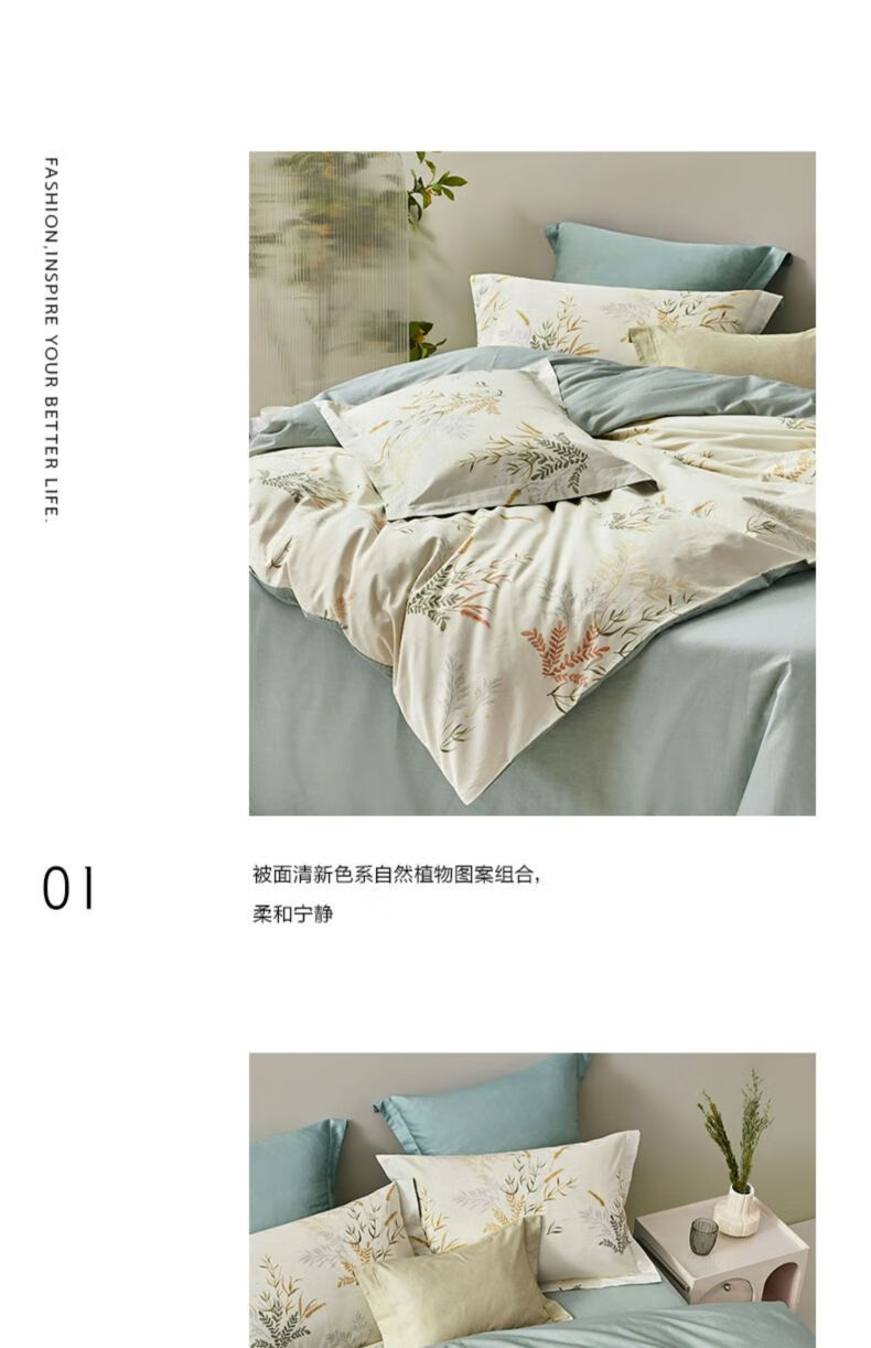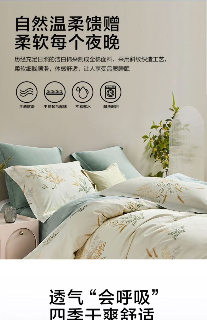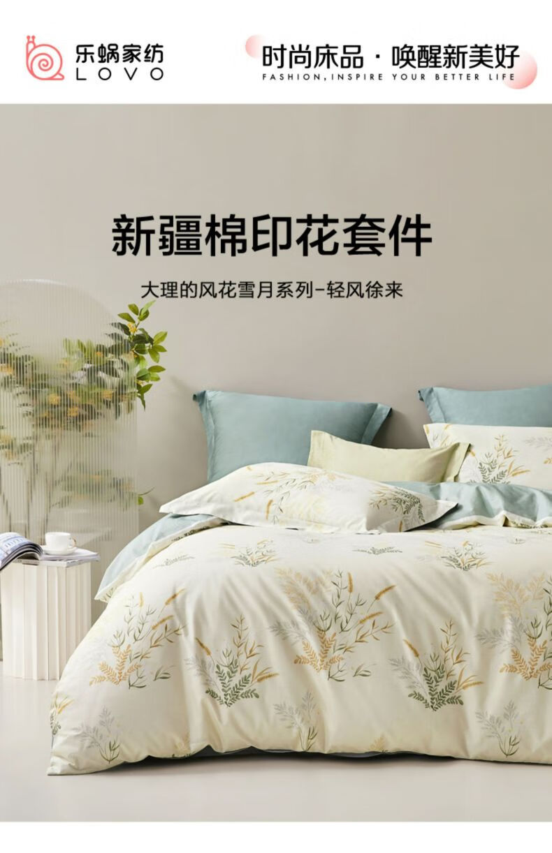 罗莱家纺LUOLAI 全棉斜纹四件套 LV-002 轻风徐来 200x230(cm)x1