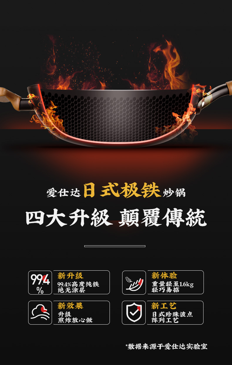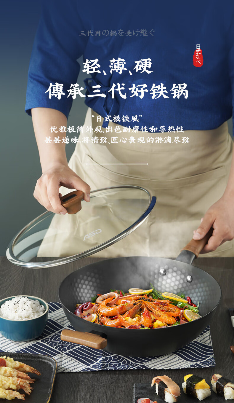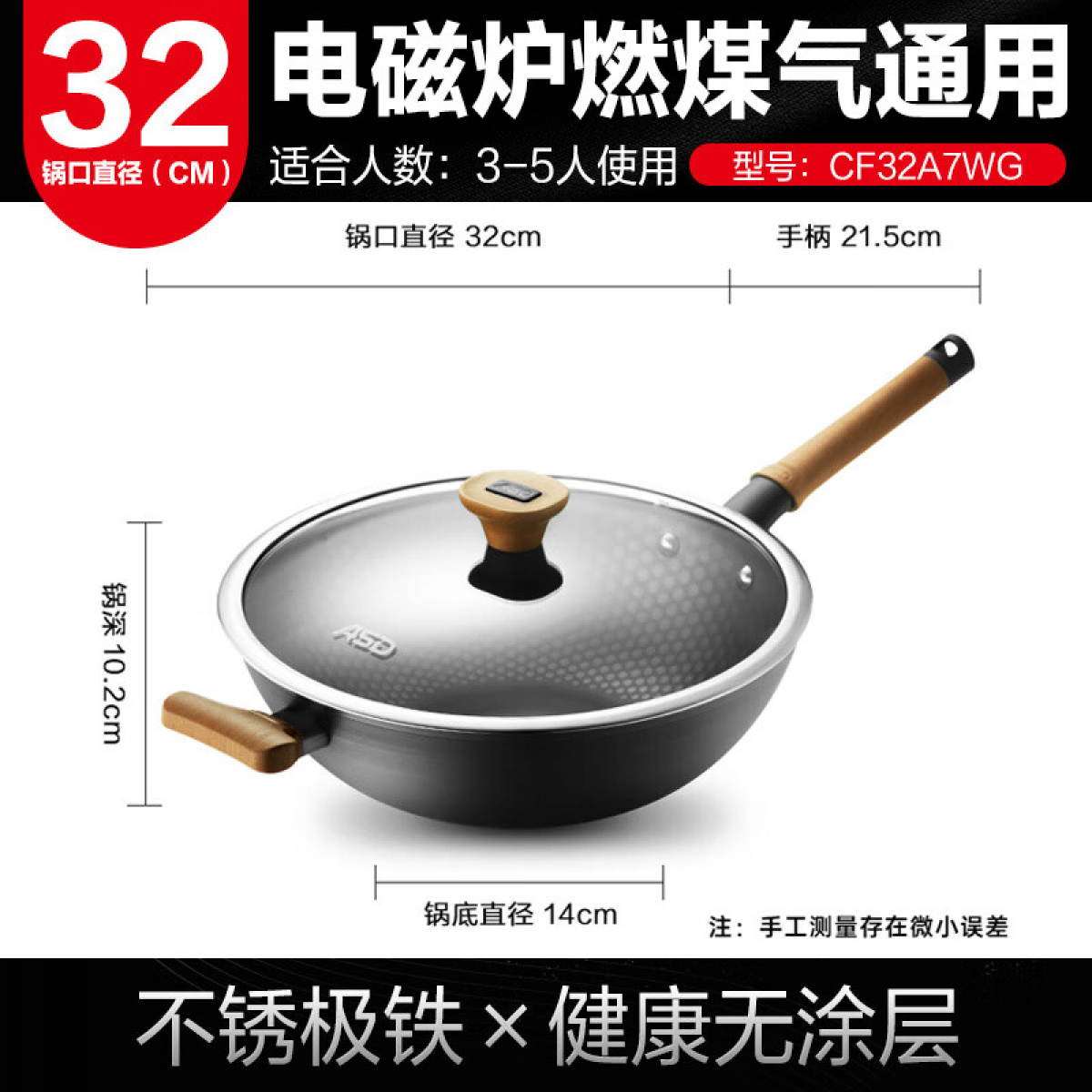 爱仕达(ASD)日式极铁炒锅 CF32A7WG 32cm