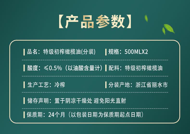 商品名称:纳福汇 特级初榨橄榄油礼盒 500ml*2