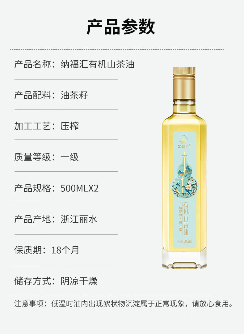 商品名称:纳福汇 纳福汇有机山茶油福禄礼盒500ml*2