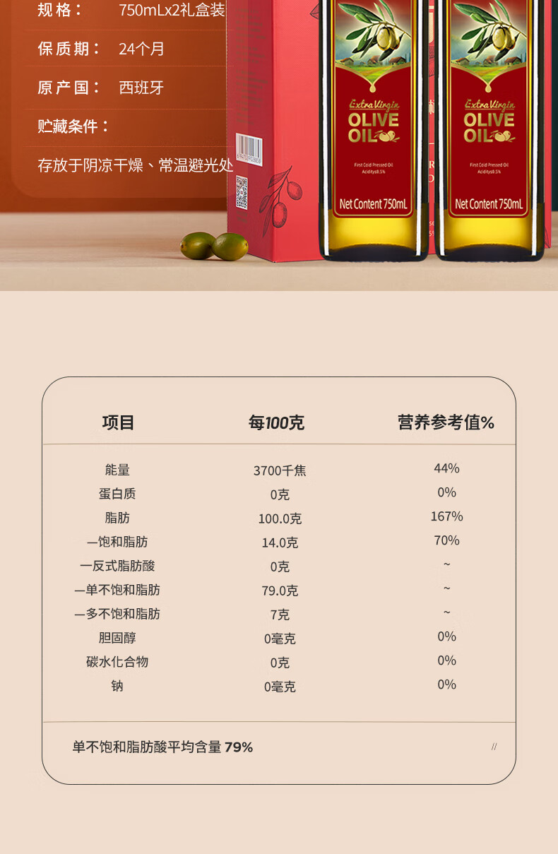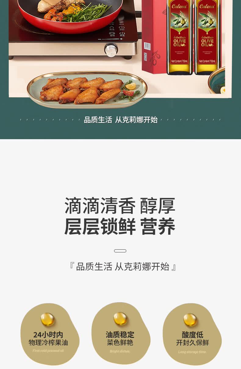 商品名称:克莉娜 calena 特级初榨橄榄油 750ml*2礼盒