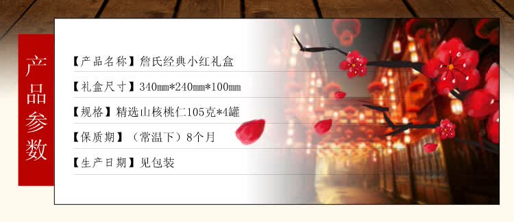 商品名称:詹氏 山核桃仁红礼盒(小红) 420g