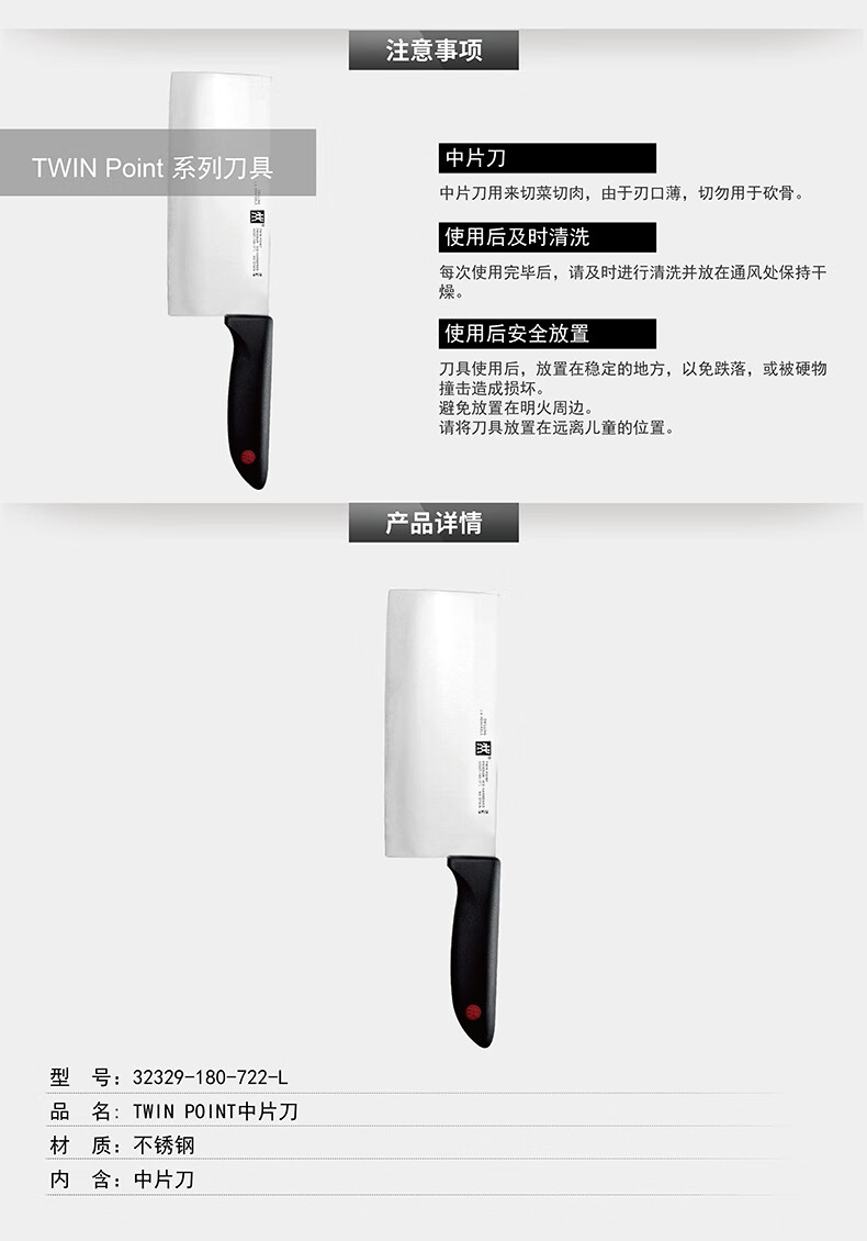 商品名称:双立人(ZWILLING)中片刀7寸厨房刀具切片刀 单刀 ZW-K319/32329-180-722