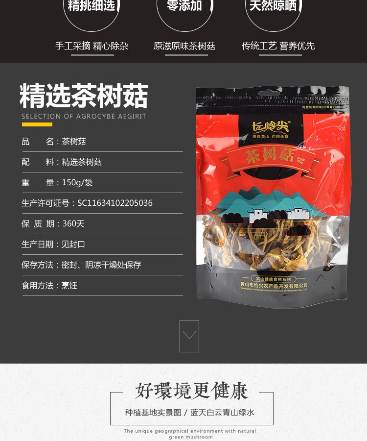 商品名称:长岭尖 高山茶树菇150g袋装