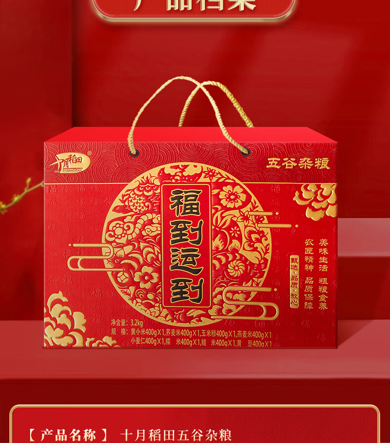 商品名称:十月稻田 福到运到3.2kg杂粮礼盒