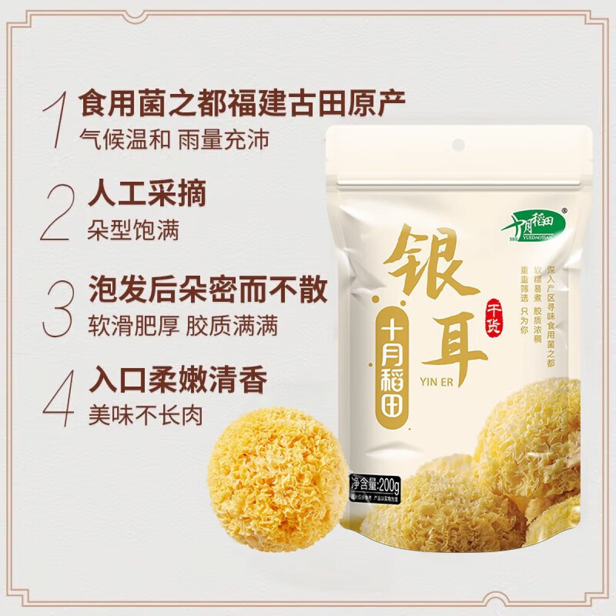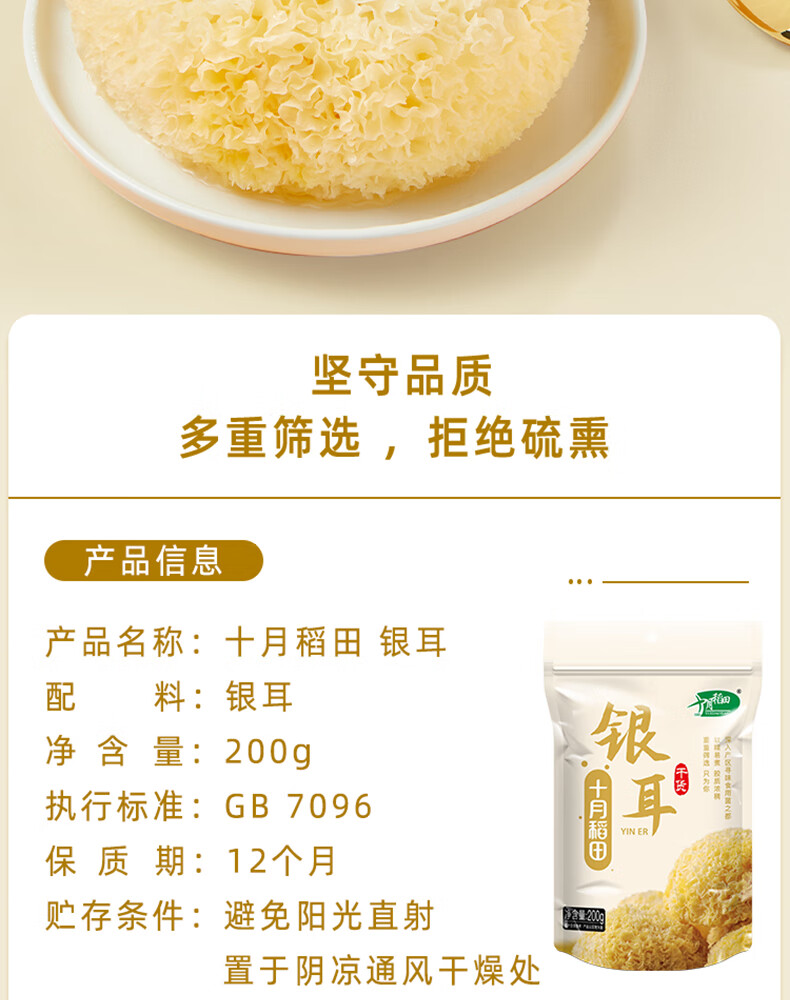 商品名称:十月稻田 银耳 200g