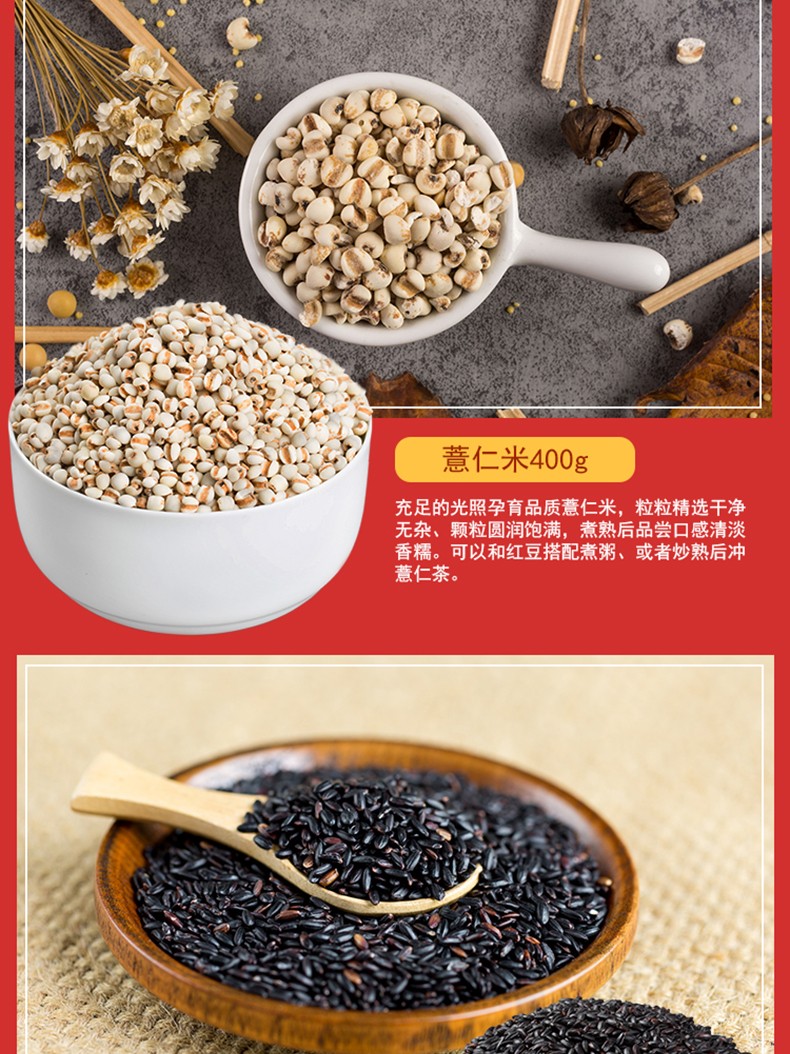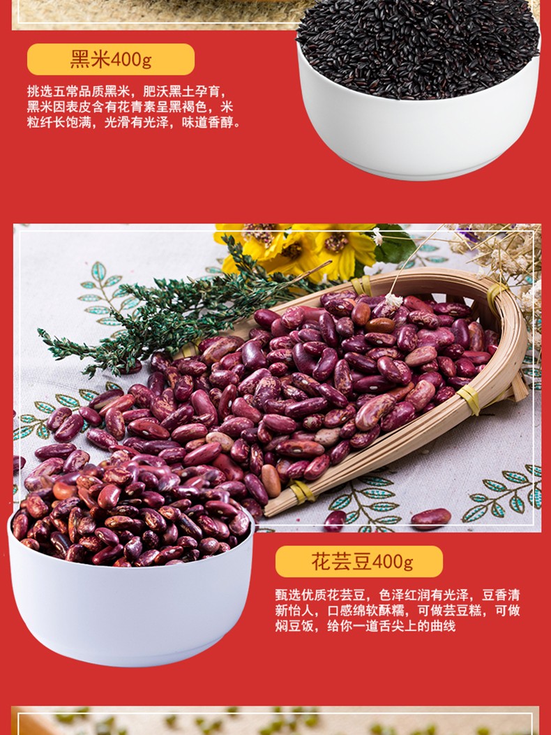 包装清单 :黄小米.黑米.糙米.薏仁米.高粱米.荞麦米.燕麦米.