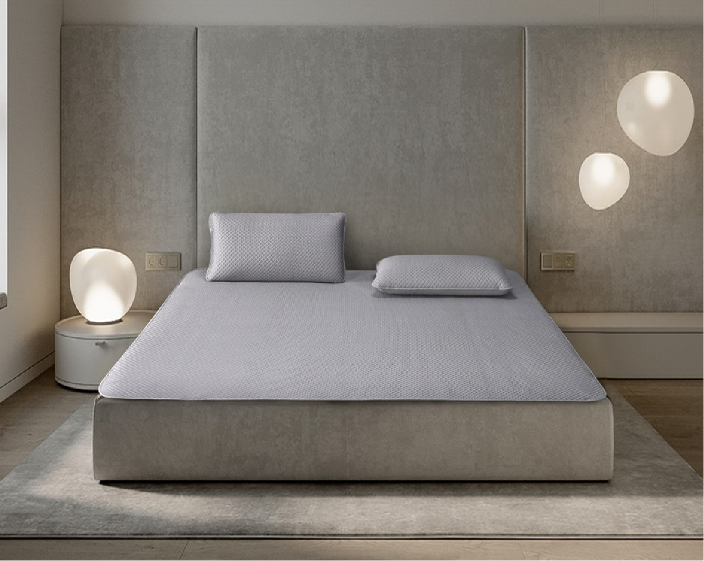 面料材质 :席子:席表层:70%聚酯纤维 29%聚烧纤维 1%氨纶 席底层:100%聚醋纤维 包边布:100%聚醋纤维(衬除外) 枕套:枕面:70%聚酯纤维 29%聚乙烯纤维 1%氨纶 枕里/底:100%聚酯纤维 包边布:100%聚酯纤维(衬除外)