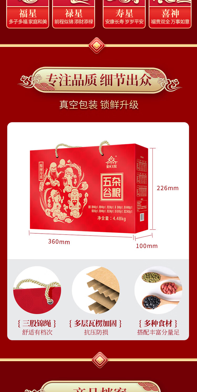 商品名称:柴火大院 福禄寿喜4.48kg红色杂粮礼盒
